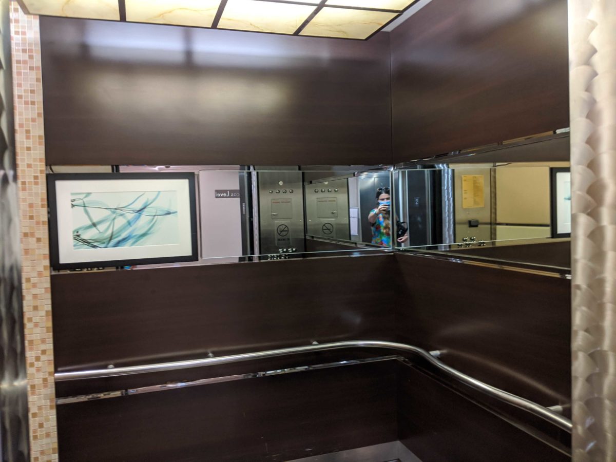 While the new design appears in some of the resort’s elevators, others still sport the old look, as seen below: