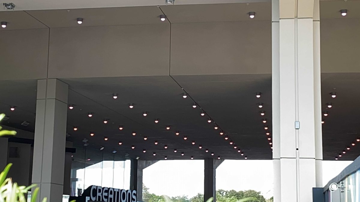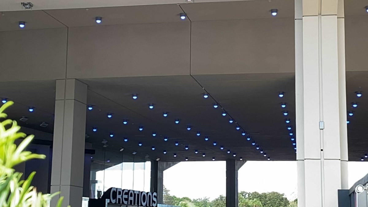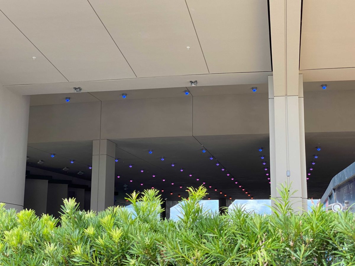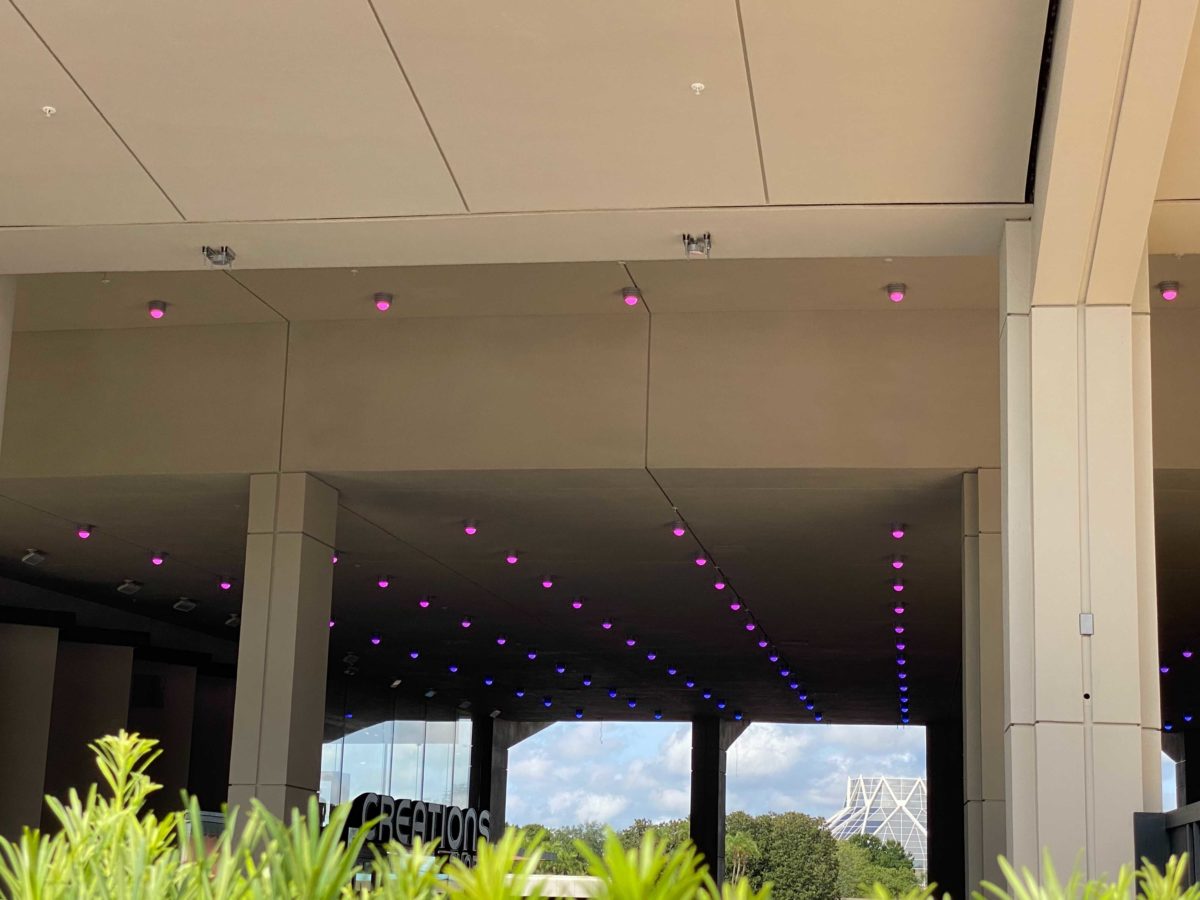 The lights in the breezeway next to Creations Shop were changing from a rainbow of color to solid colors.