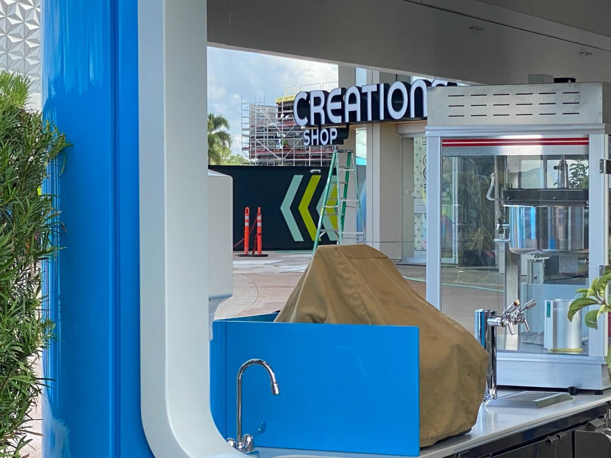 Creations Shop and Club Cool will be opening tomorrow, September 15, at EPCOT. Final touches are being added to the shop, lights are being tested, and a menu has been posted at the new popcorn stand.