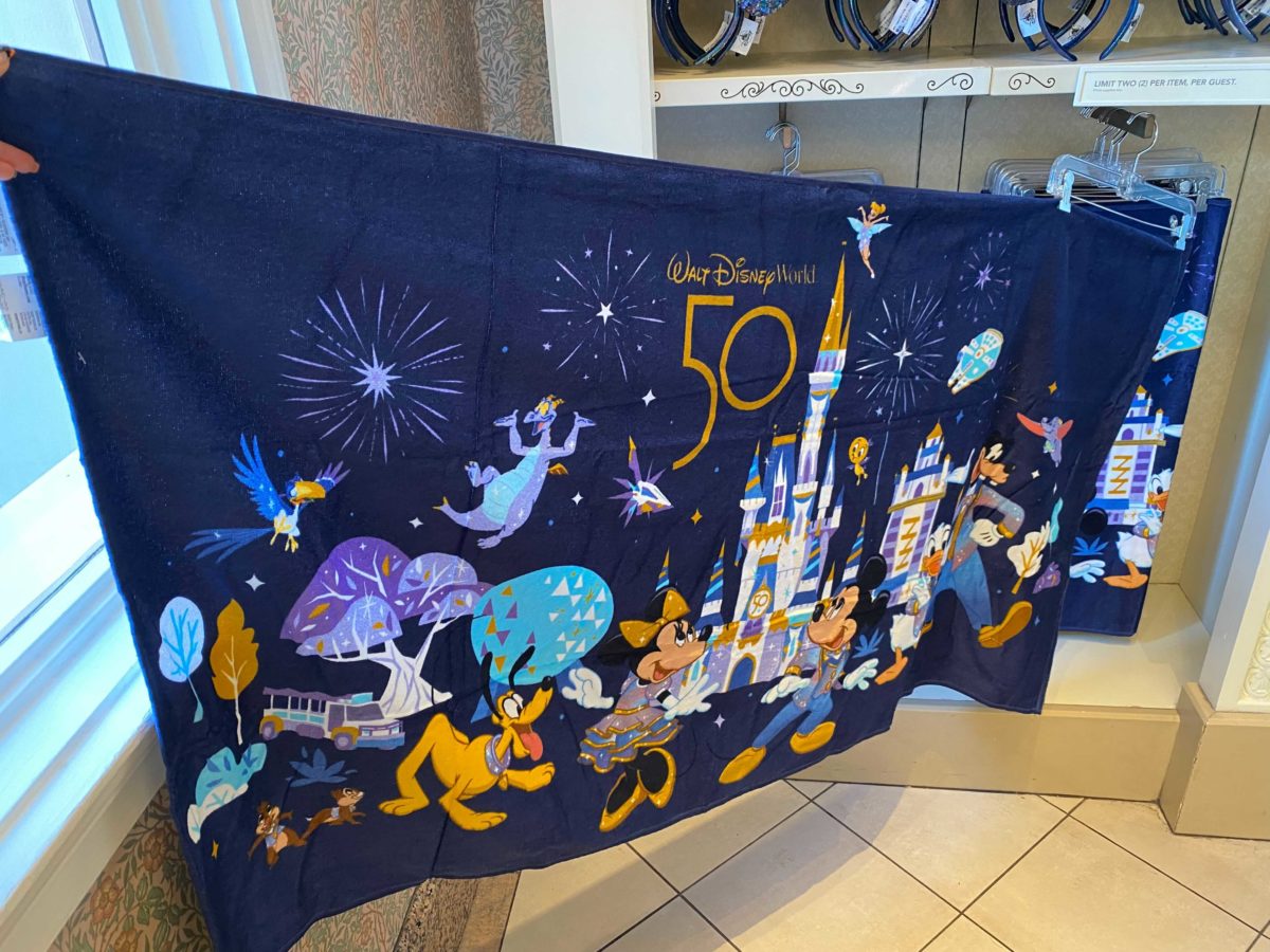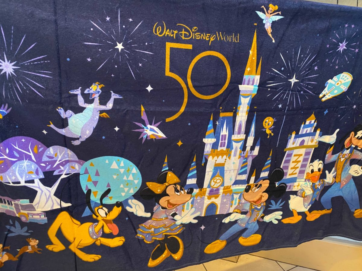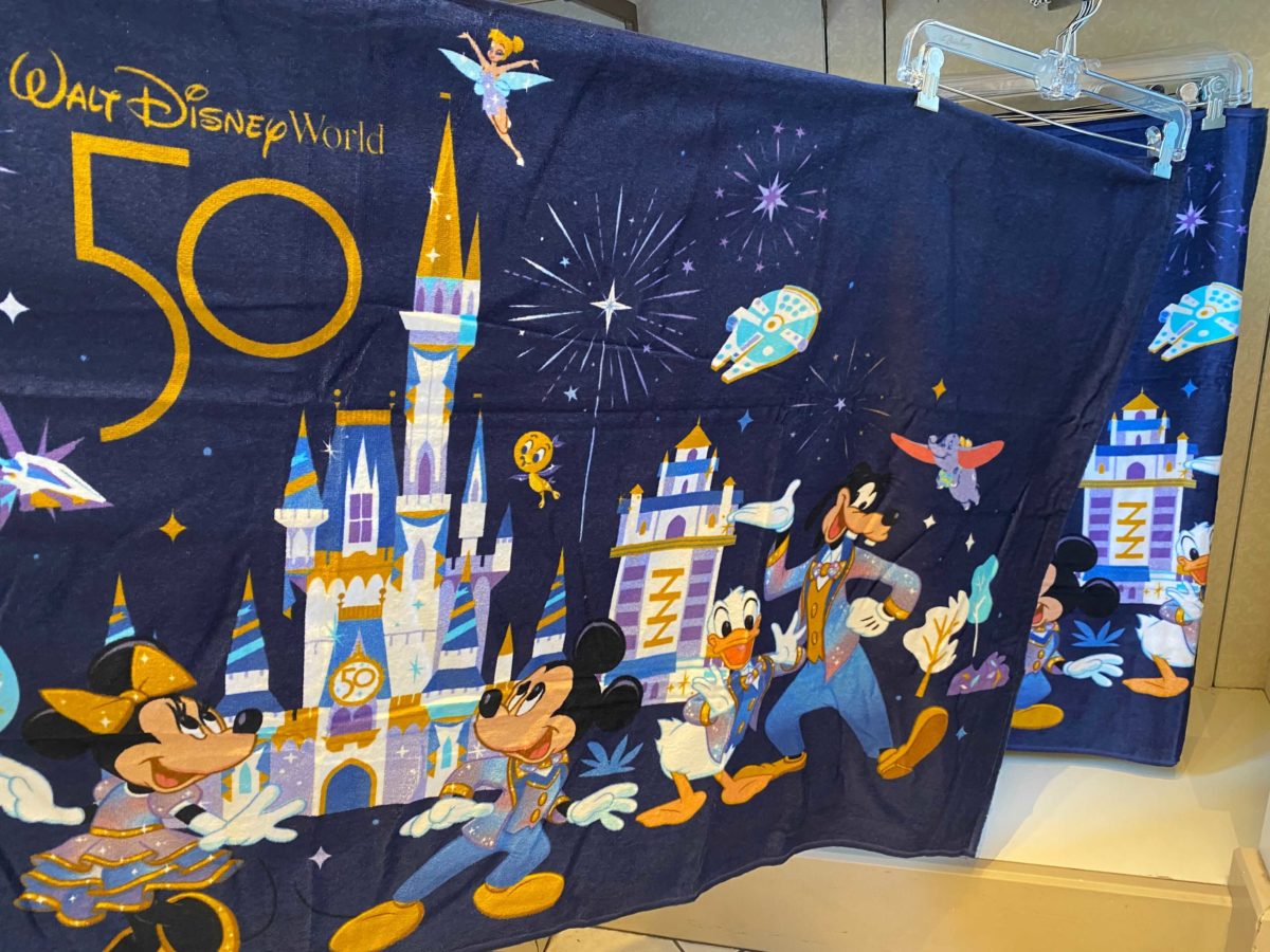 Even more 50th anniversary merchandise has arrived at Walt Disney World. We found a new towel, water bottle, photo album, Park Pal, snow globe, and pressed coin book in the Emporium at Magic Kingdom.