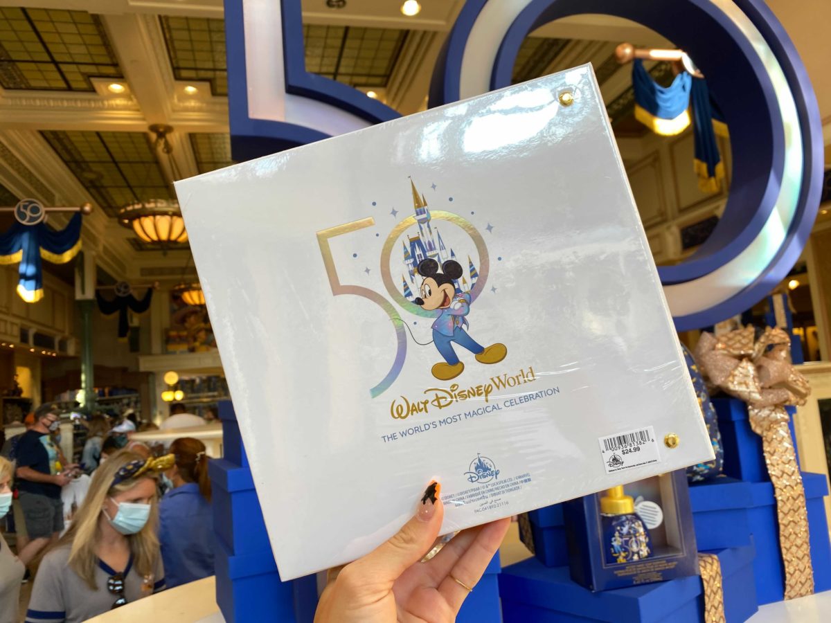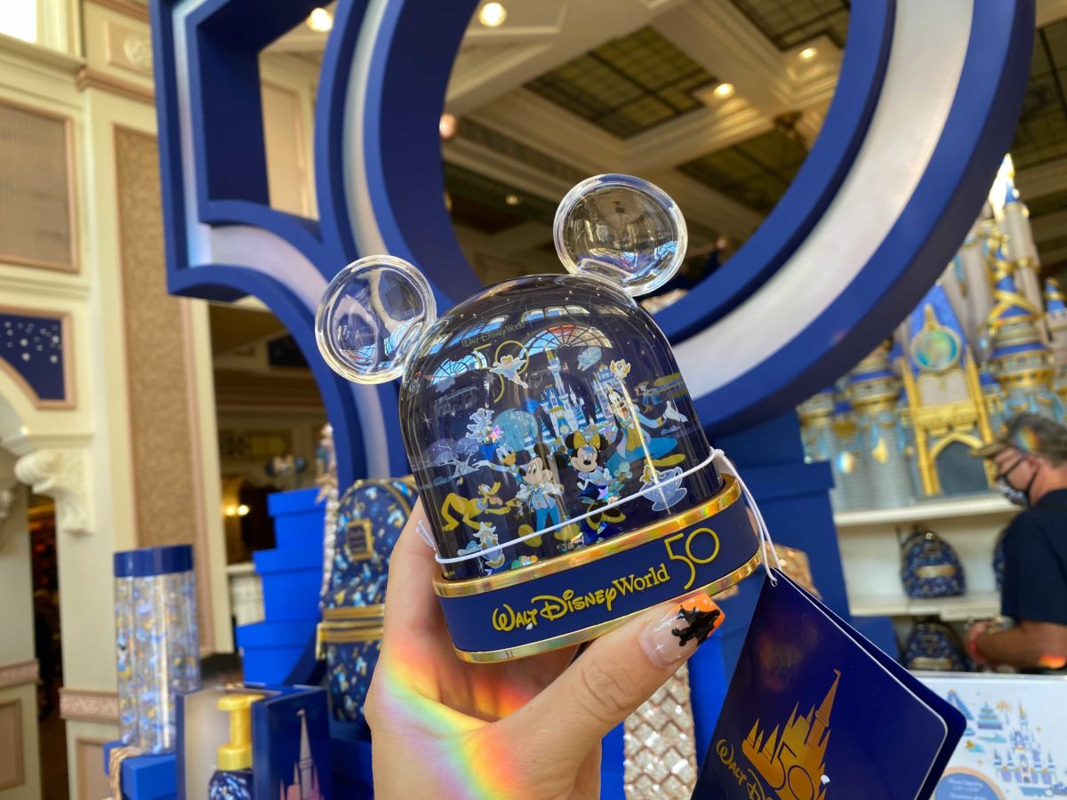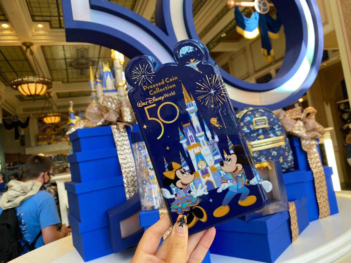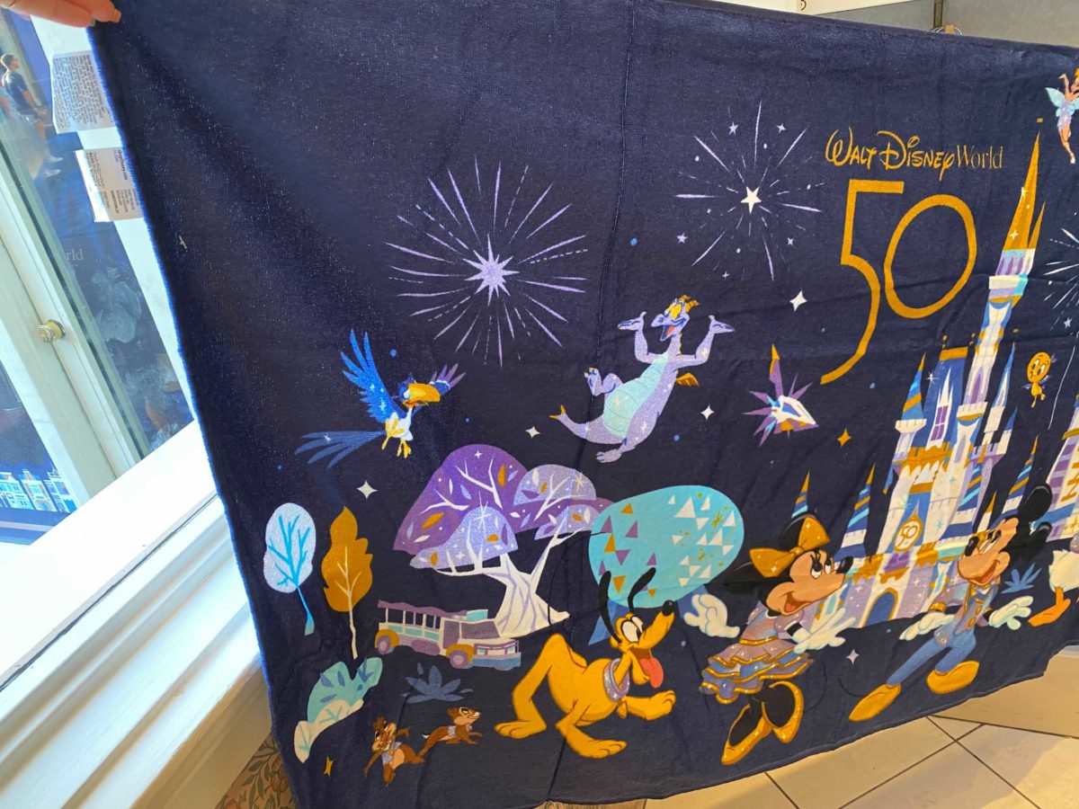 Even more 50th anniversary merchandise has arrived at Walt Disney World. We found a new towel, water bottle, photo album, Park Pal, snow globe, and pressed coin book in the Emporium at Magic Kingdom.