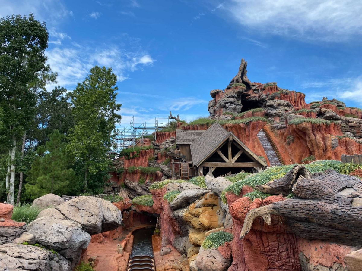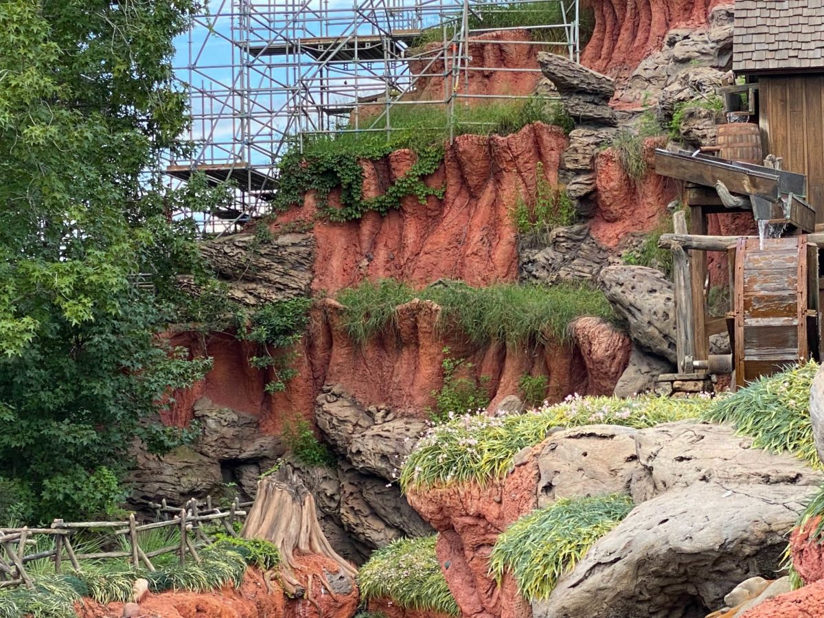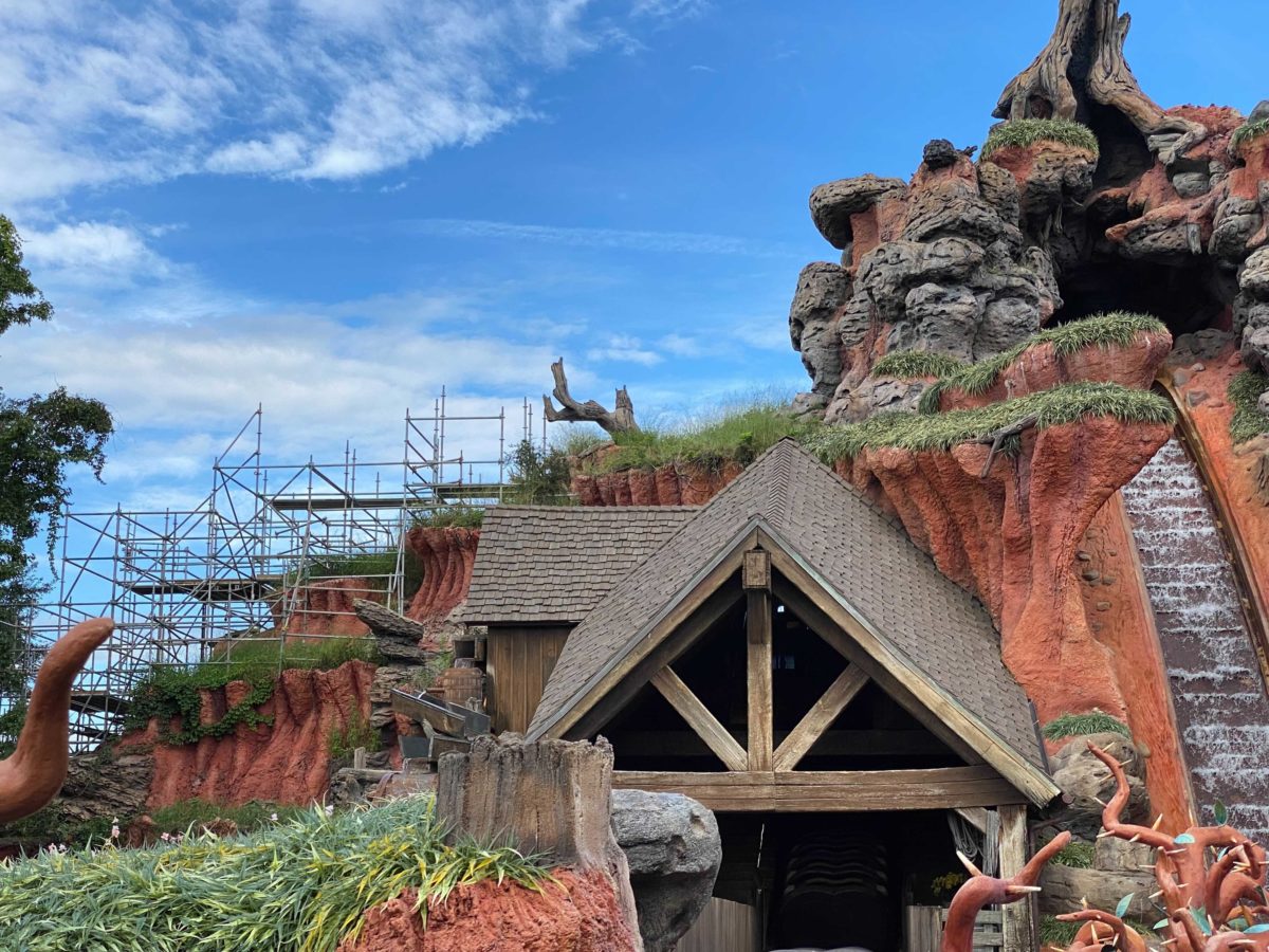 Last month, scaffolding was erected over part of the Splash Mountain façade at Magic Kingdom. As refurbishment of the mountain is completed, scaffolding is now being removed.
