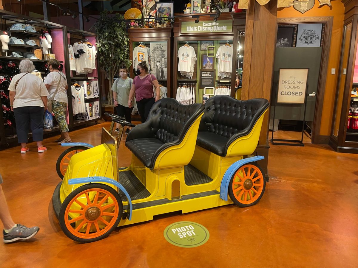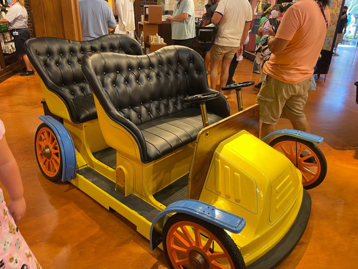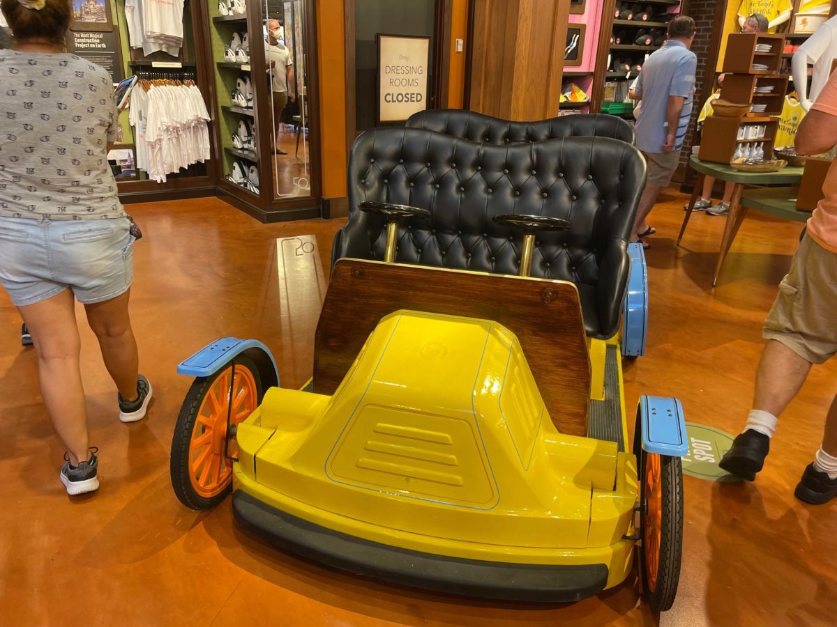 But below, guests can take a picture with a car from the classic attraction, which ran from 1971 to 1998.