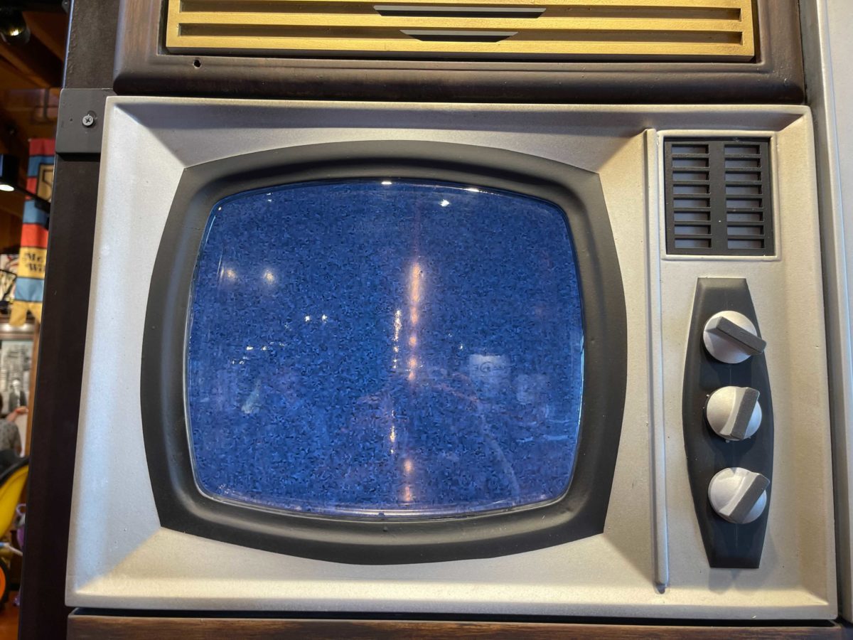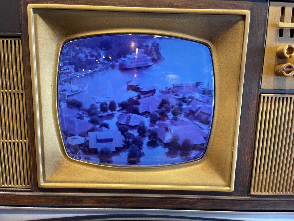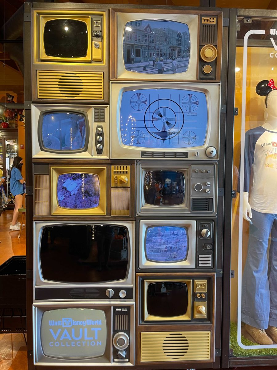One section of the exterior has a wall of vintage-looking televisions, which show clips of Walt Disney World under construction and its early days.