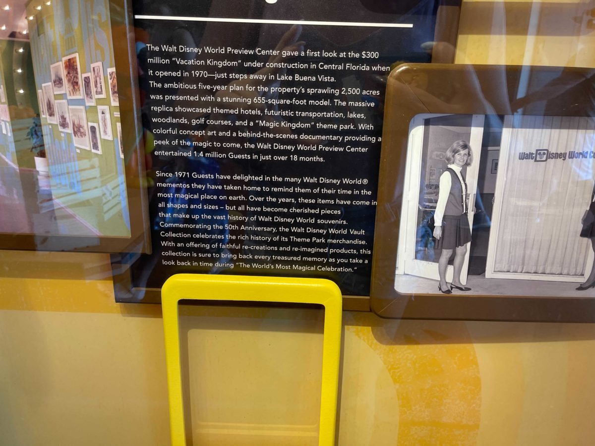 Next to the televisions, this museum-styled display this one focused on The Preview Center, which offered a sneak peek of the resort from January 1970 to September 30th, 1971.