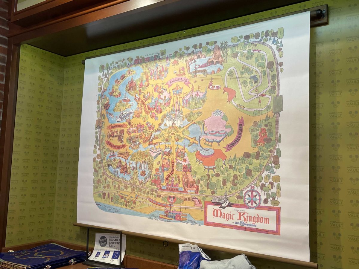 With Walt Disney World’s 50th anniversary just days away, the Vault Collection of merchandise has officially launched at Marketplace Co-Op. And while the merchandise pays tribute to fifty years of The Most Magical Place on Earth, the décor of the shop is just as captivating.