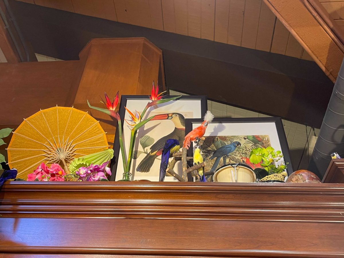 Be sure to look above for even more props honoring 50 years of Walt Disney World. These birds suggest memories of Walt Disney’s Enchanted Tiki Room, previously known in Florida as Tropical Serenade.
