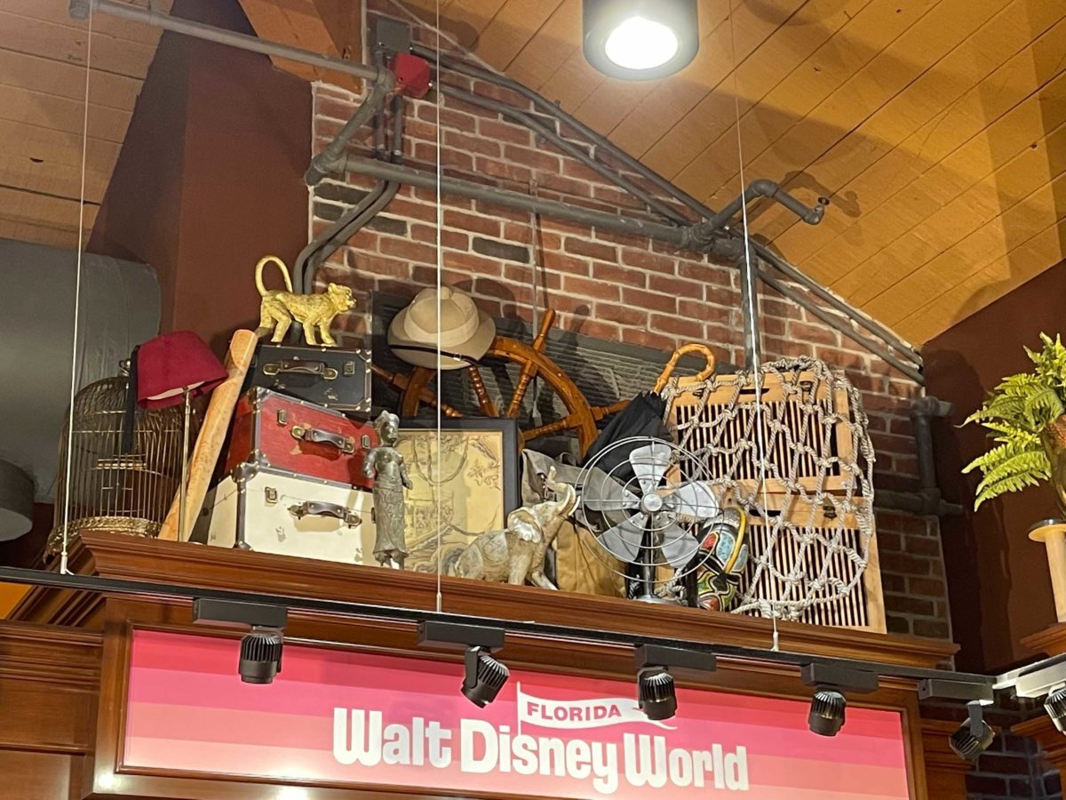 Speaking of the Adventurers Club, another display offers items to remind guests of the fun of Pleasure Island. You can find legs to represent Mannequins, a surfboard and umbrella for Rock ‘n’ Roll Beach Club, and a disco ball for 8TRAX. And with that, our tour through history has come to an end, but you can see it all again in the video below!