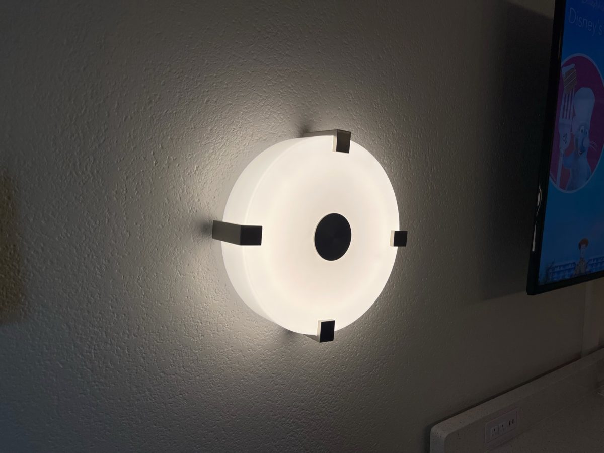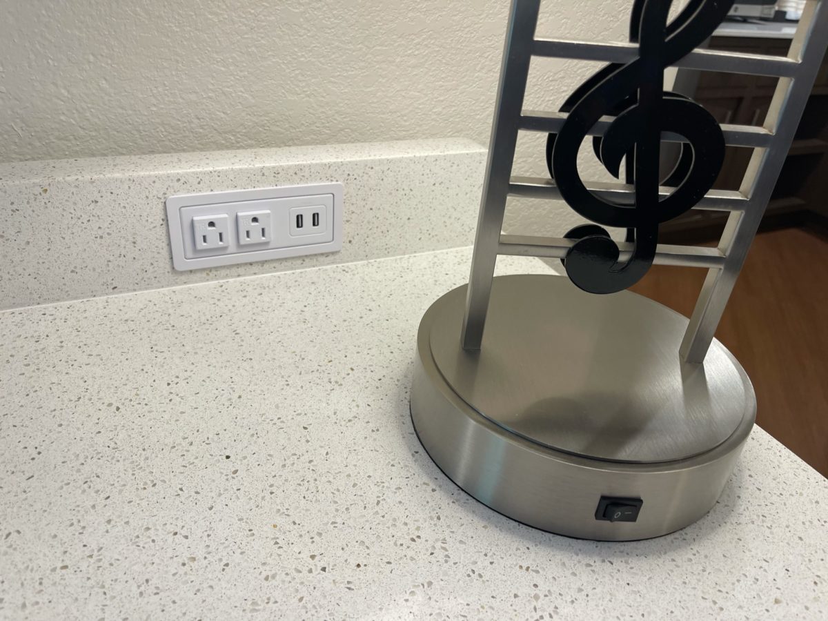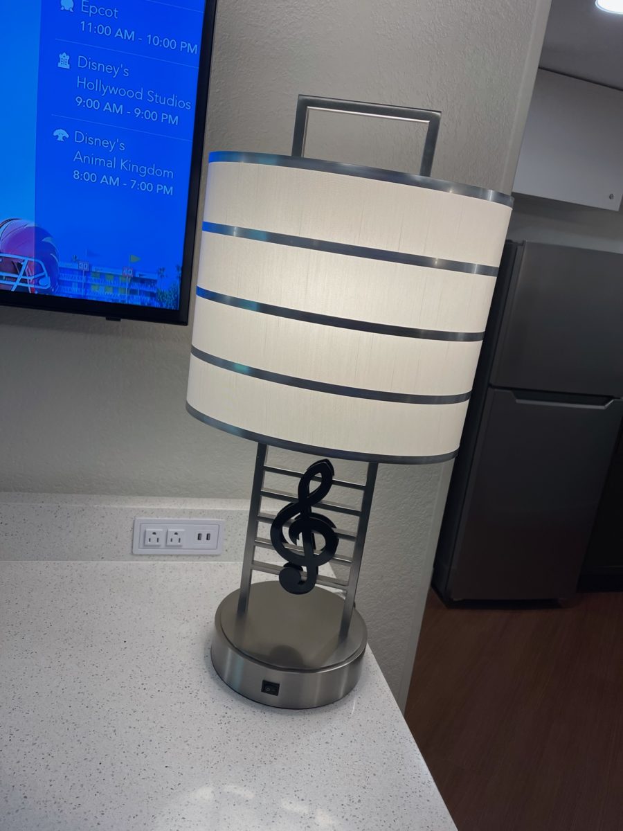 The lamp matches the treble clef fixture in the living area but with no thematic touch.