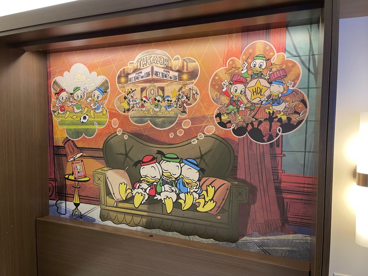 This mural features Huey, Dewey, and Louie dreaming of their possible careers.