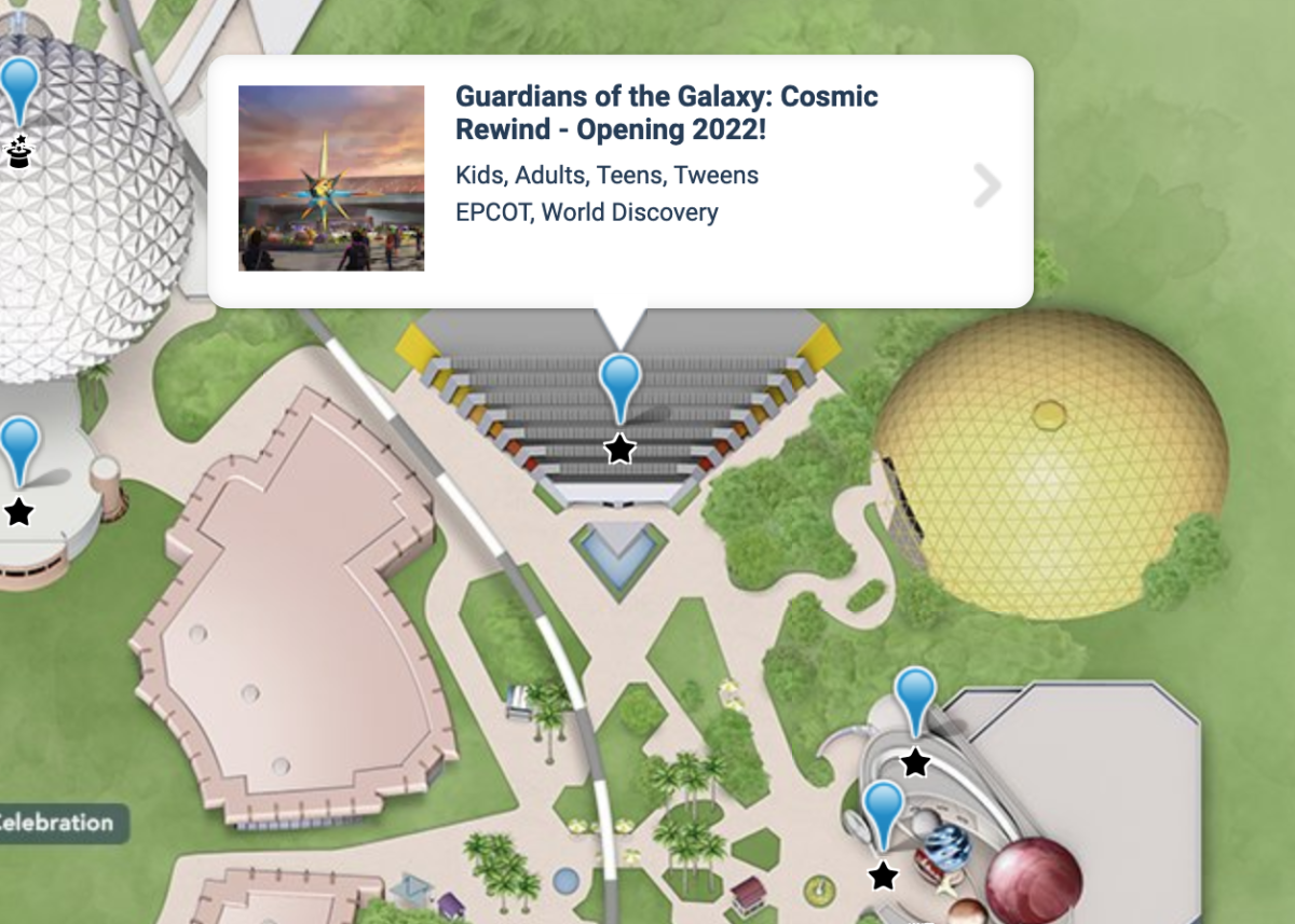 Disney has updated the digital map for EPCOT to include the “Harmonious” barges and their daytime fountains, as well as the opening year for Guardians of the Galaxy: Cosmic Rewind.