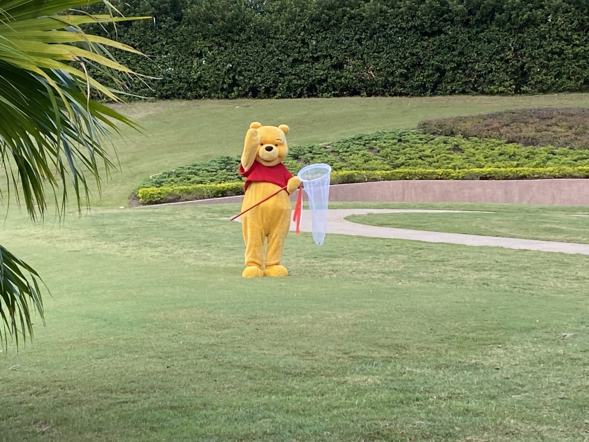 Winnie the Pooh was out catching butterflies on this gorgeous day. He even stopped to wave hello!