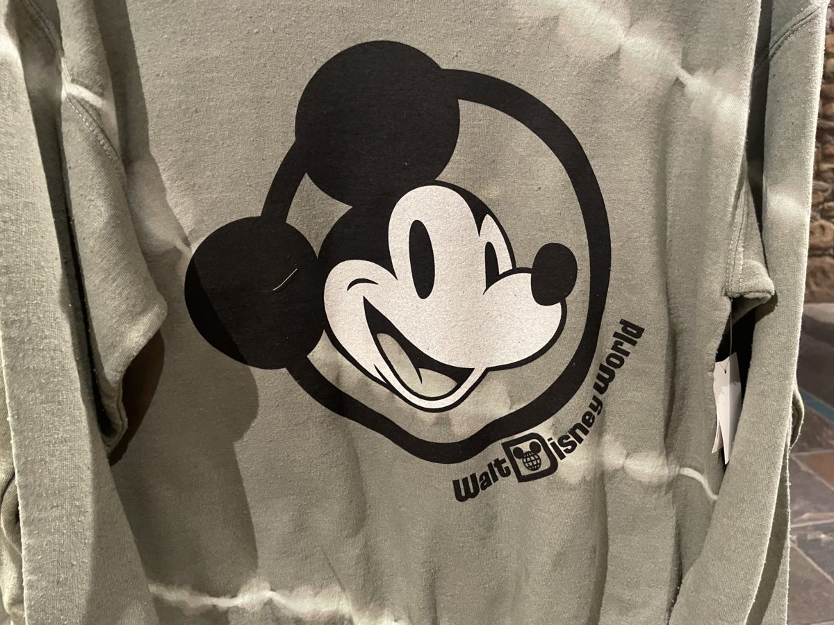 At Discovery Trading Post, we found a new cozy sweater with Mickey Mouse on it. It is an olive green tie-dye and sure to keep you comfy come winter.