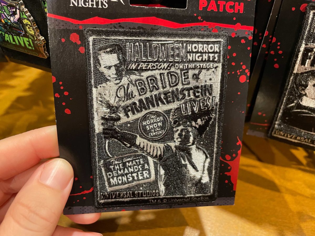 The Bride of Frankenstein takes center stage on this poster themed patch. We found this patch in the Universal Studios Store at CityWalk.