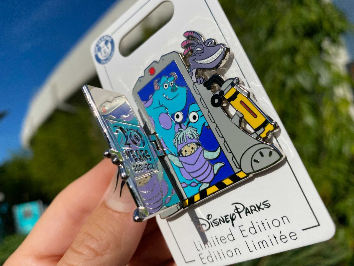 The door on this pin opens to reveal Sully and Boo behind it. On the backside of the door is the “20 Years, 2001-2021” logo.