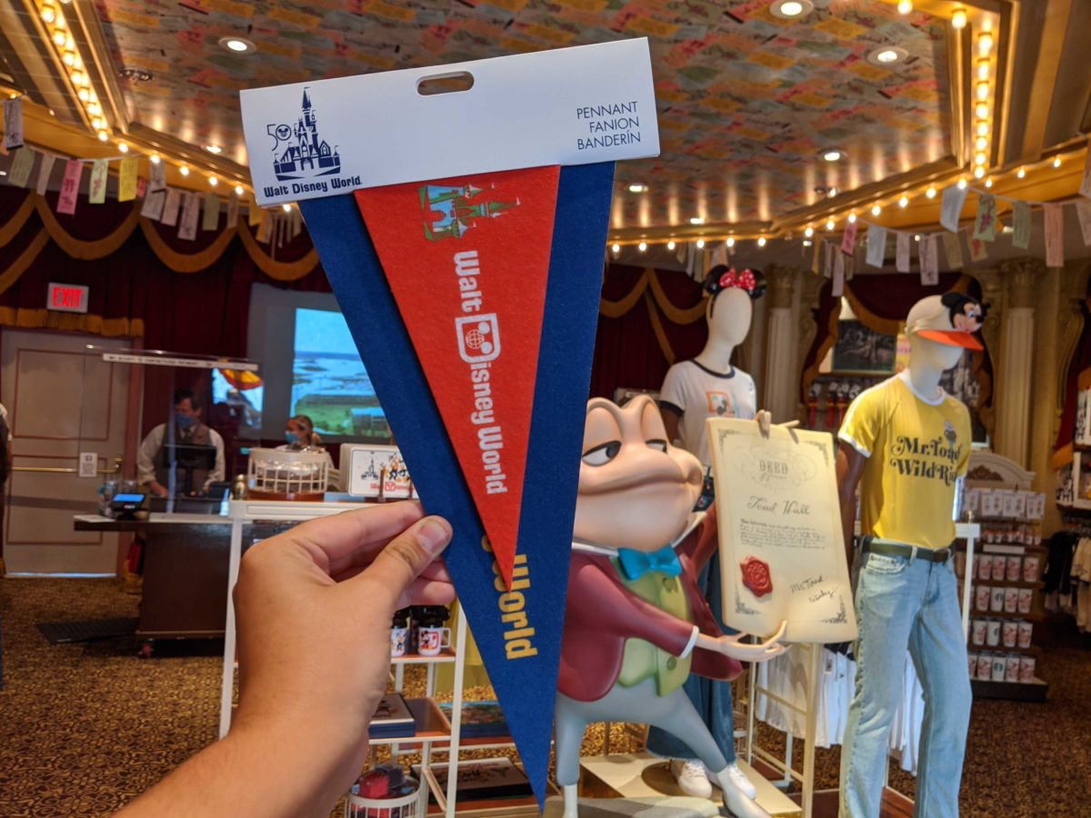 Even more retro items have joined the Vault Collection available for the 50th anniversary of Walt Disney World. We found this fan, pennant, license plate, and thermos at Main Street Cinema in Magic Kingdom.