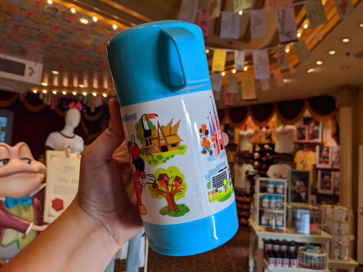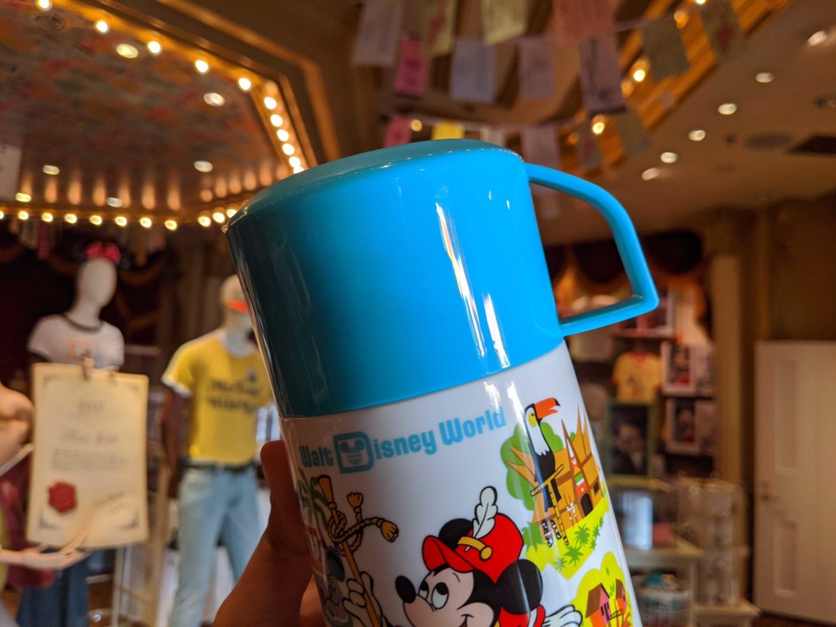 The rest of the thermos features different Magic Kingdom icons from the 70s.