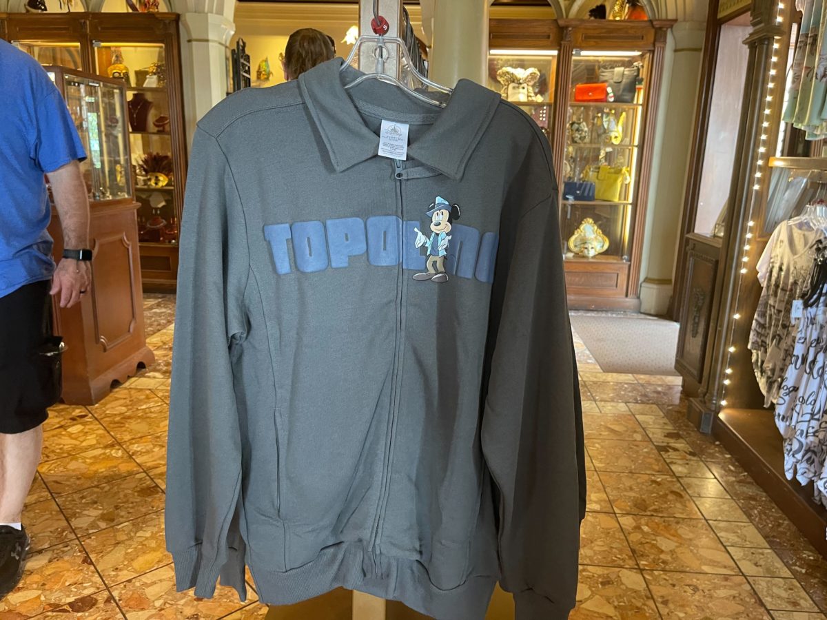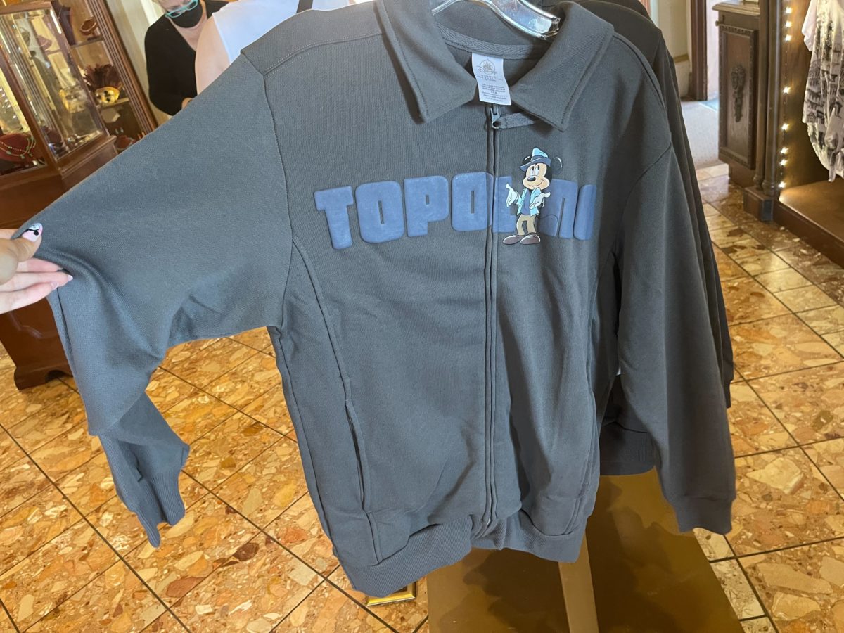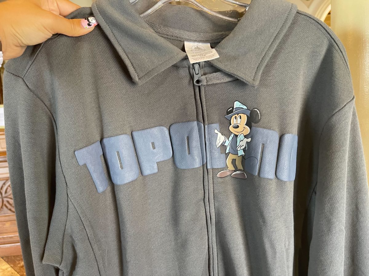 This gray jacket also features the Italian word for Mickey Mouse, “Topolino.”