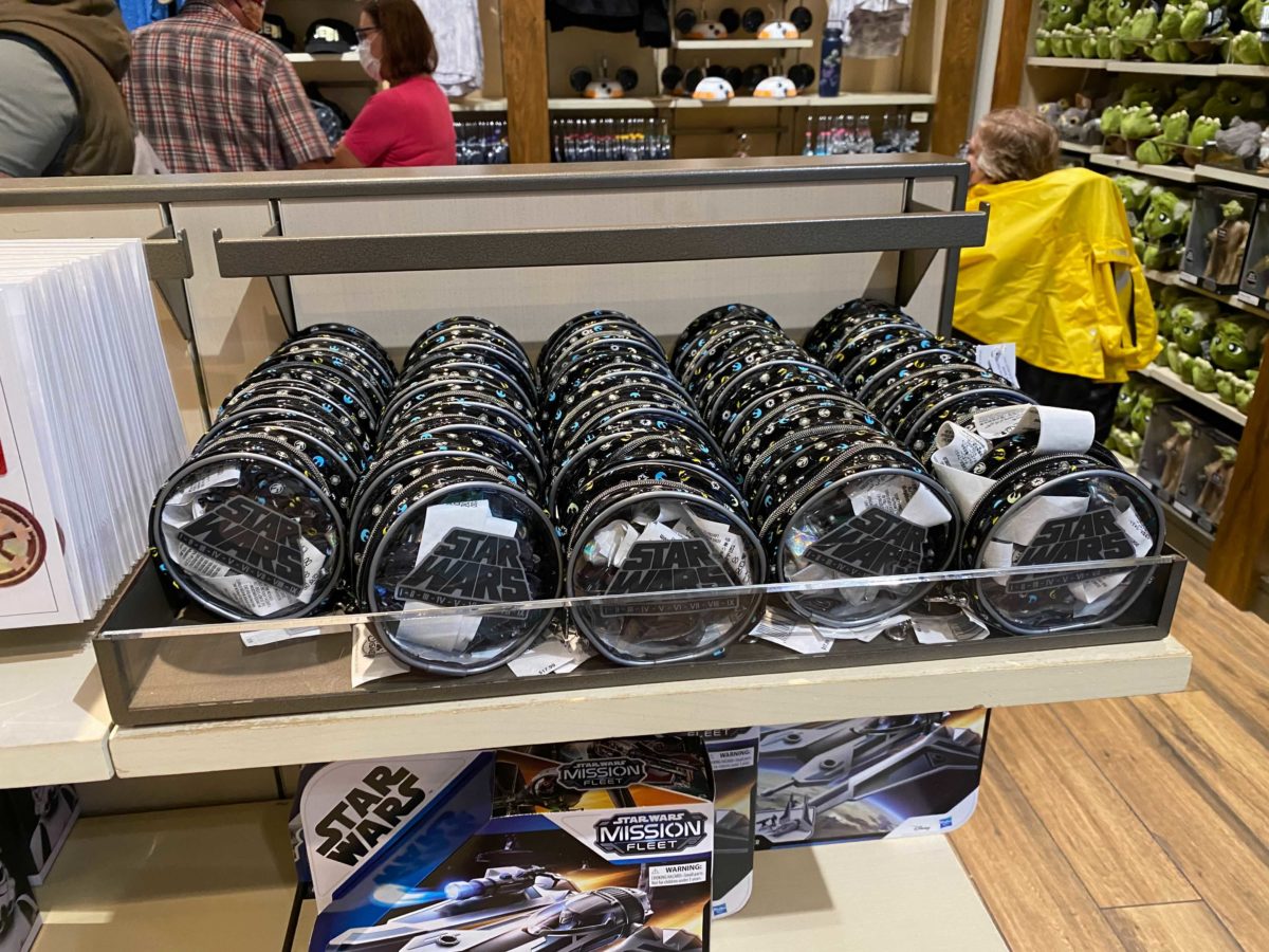 The collection of Star Wars merchandise at Walt Disney World already includes things like earrings and necklaces. Now, you can use the “force” to keep long hair tied back. We found these “Star Wars” scrunchies at World of Disney in Disney Springs.