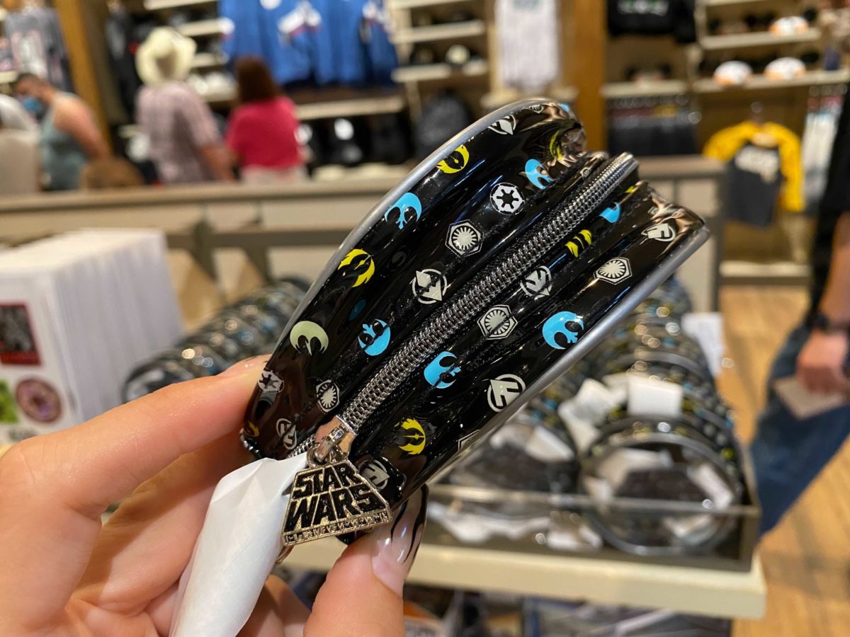 The side of the case features the same “Star Wars” universe logo assortment design as one of the scrunchies.