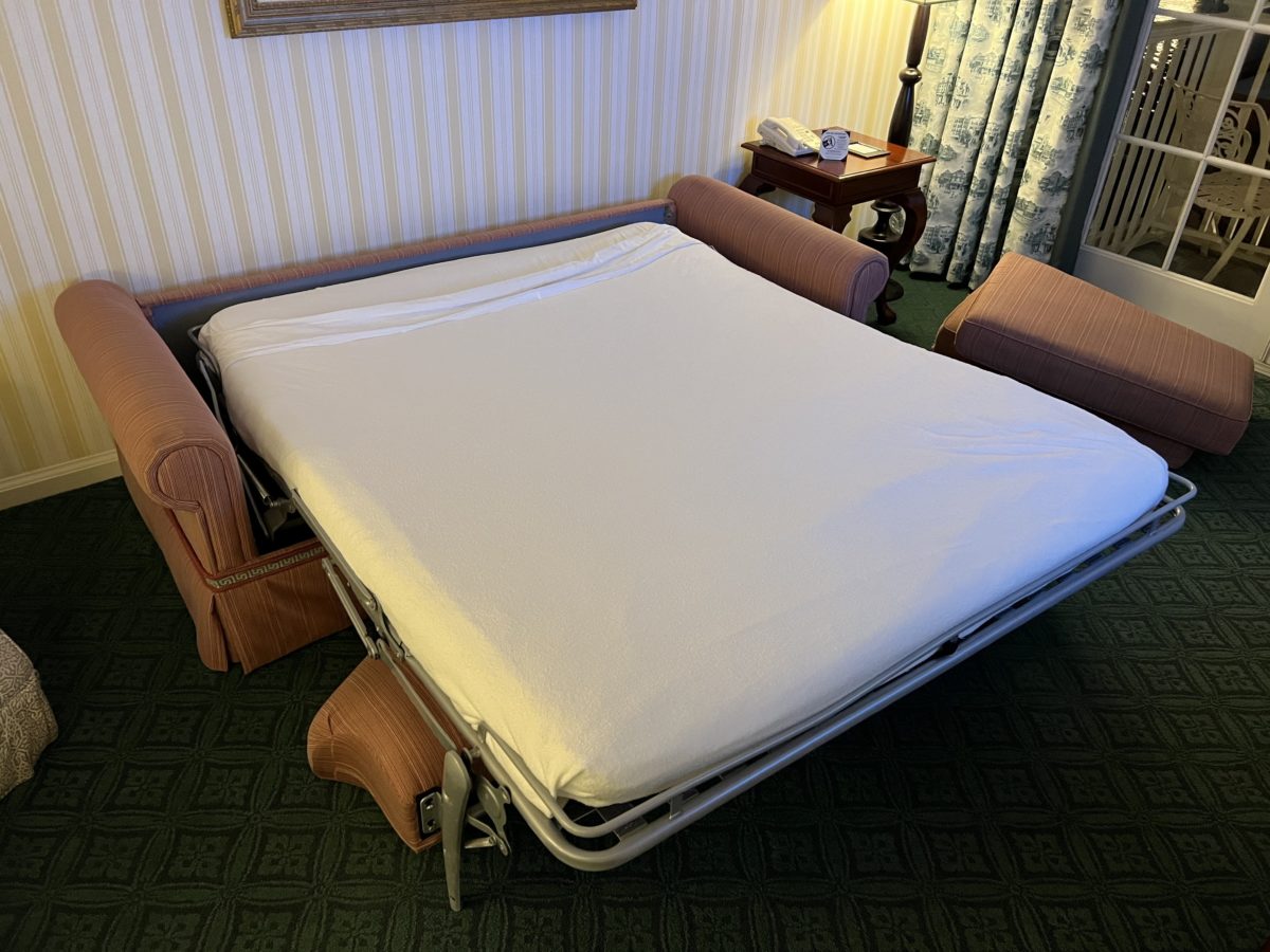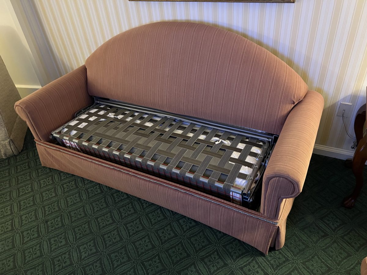 The couch also folds out into a sofa bed for additional room to sleep.