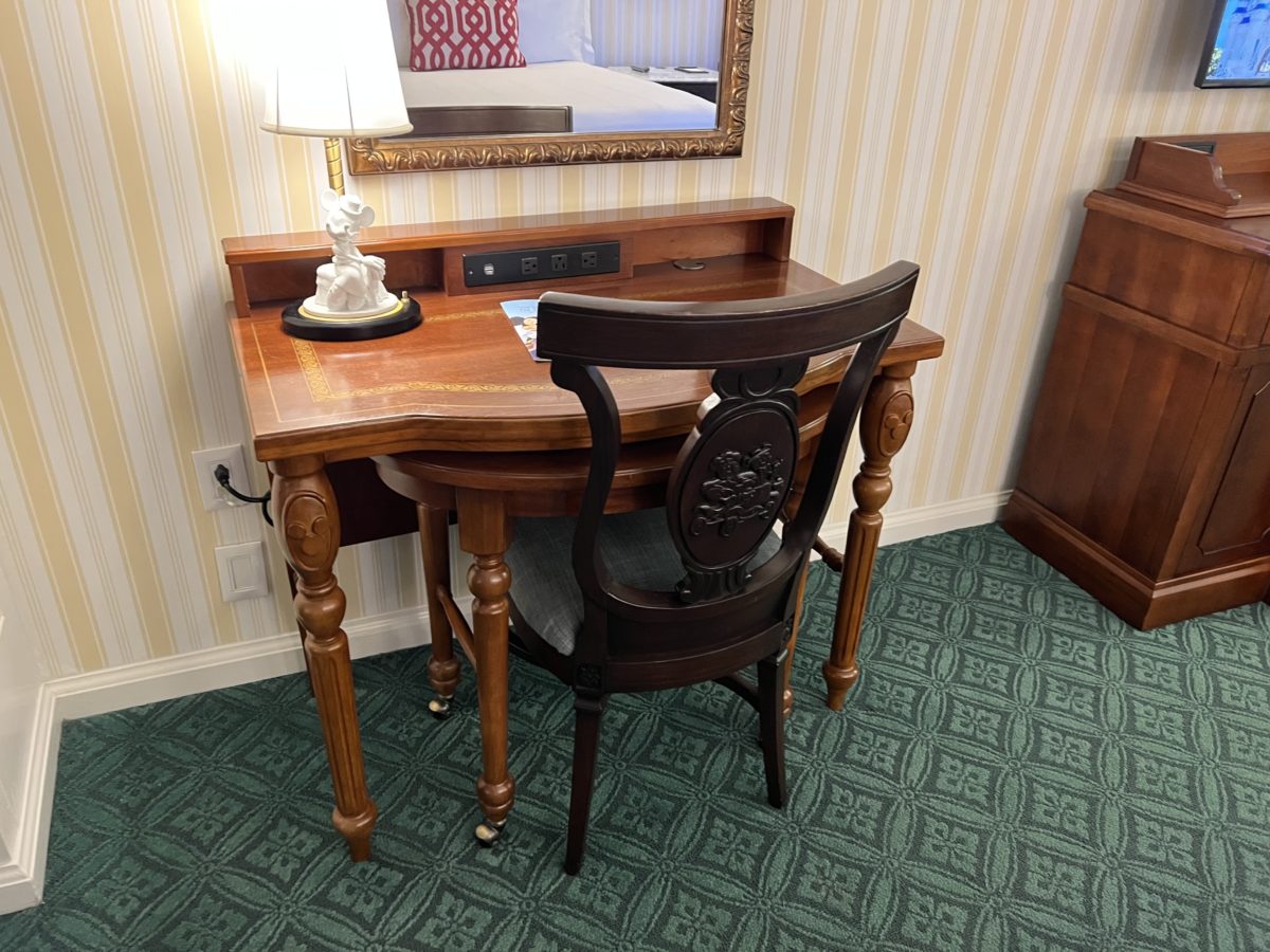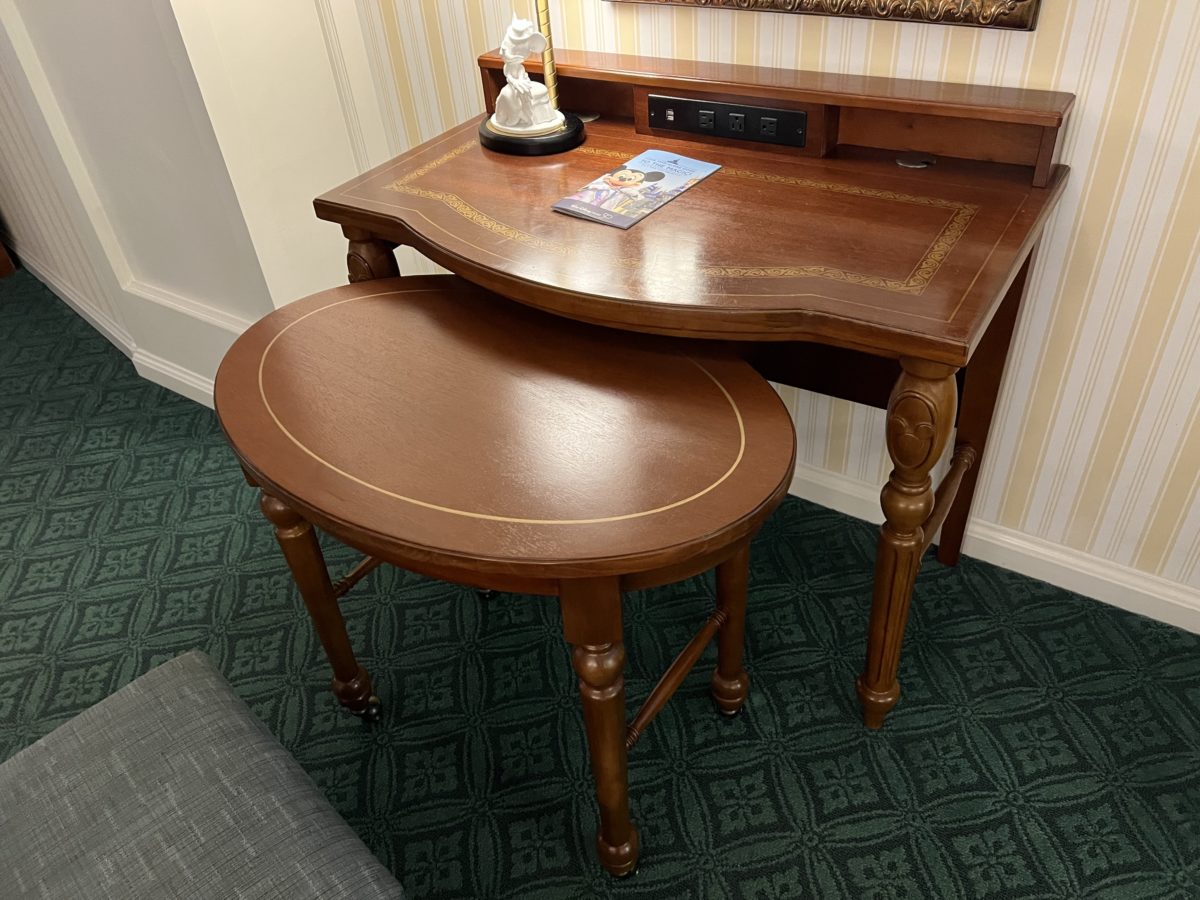 On the legs of the desk are a couple of hidden Mickeys.
