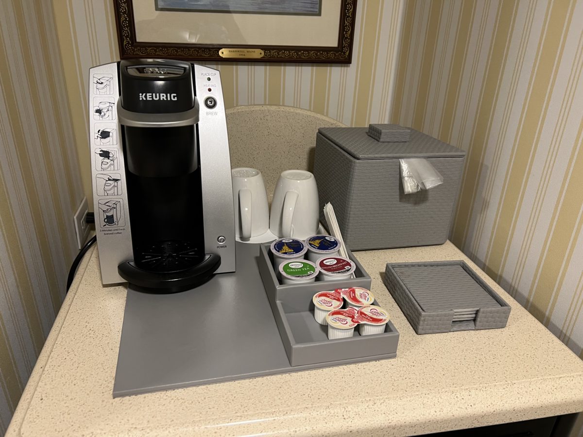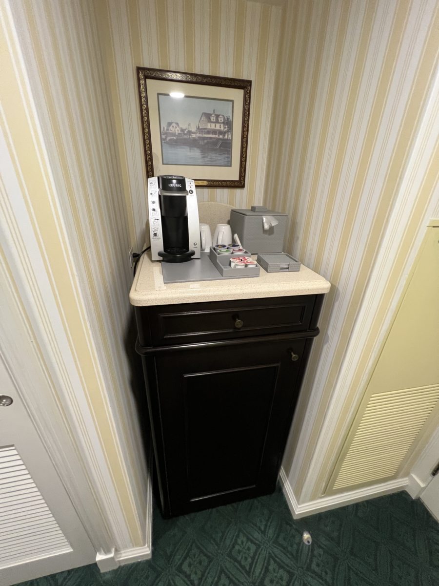 There is also a little coffee nook with a Keurig.