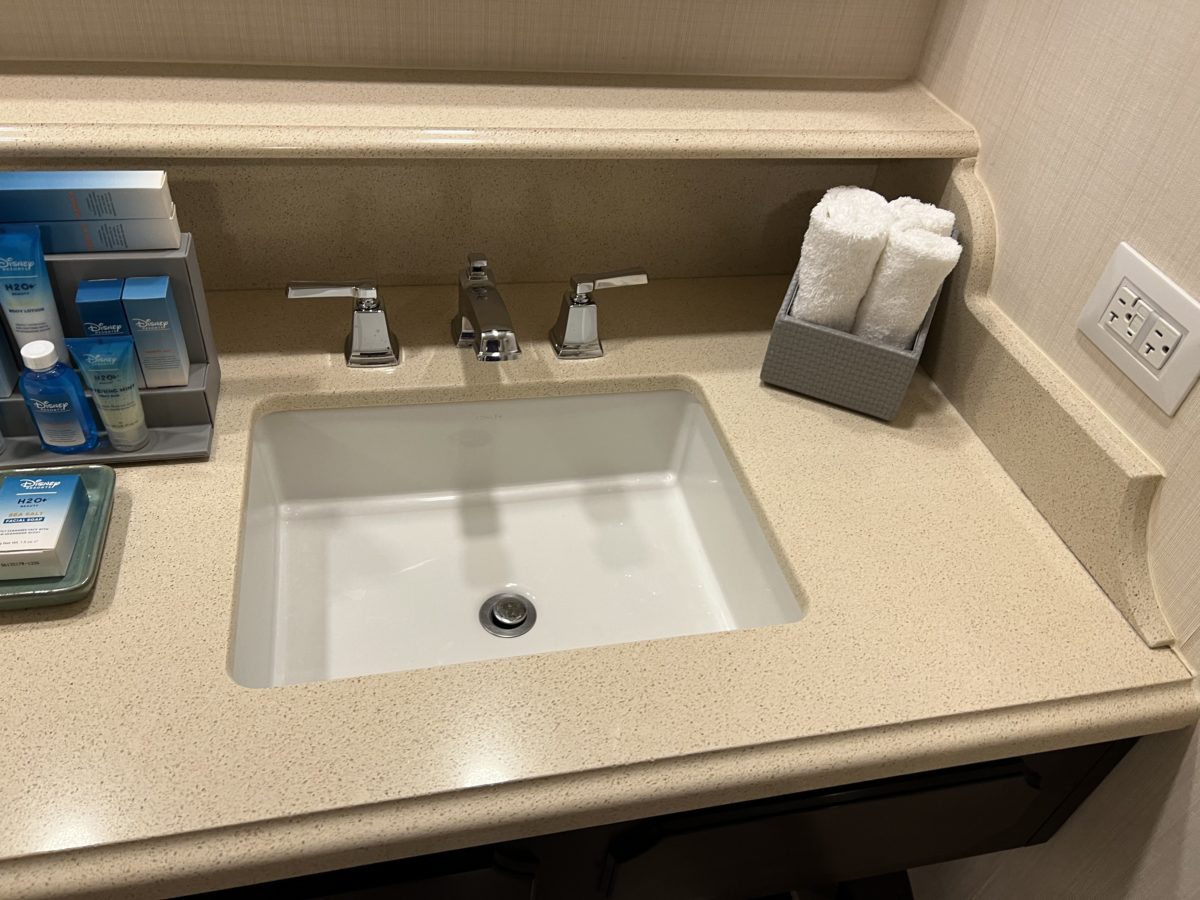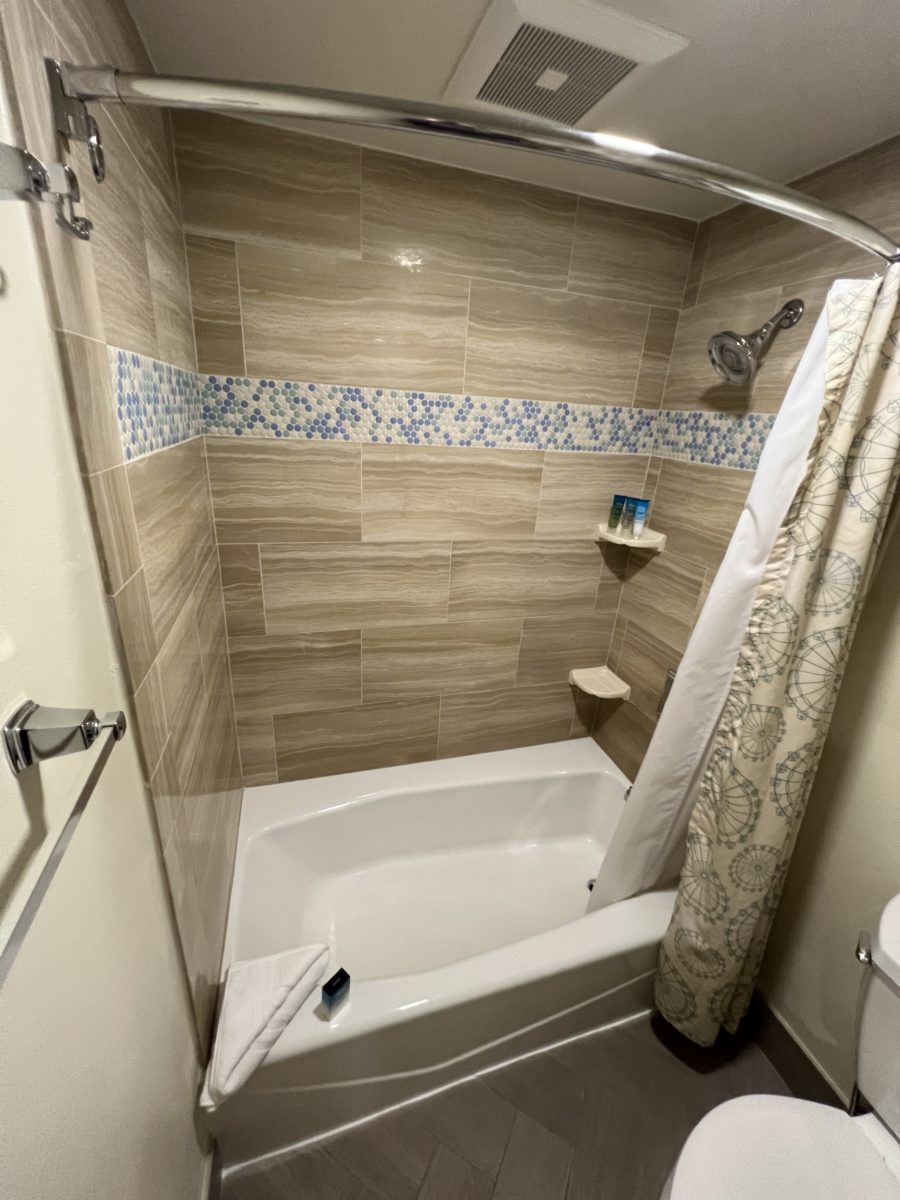 1. It looks like they remodeled the bathroom and called it a day. The room needs a refresh. I am from the east coast and I have stayed at hotels near the shore. This room doesn’t make me feel I am staying at the beach. This room could be anywhere. I have seen the couch in this color in at least 2 other resorts. The carpet really ages it; other resorts have gone to laminate. They should put in a wallpaper mural of the beach.