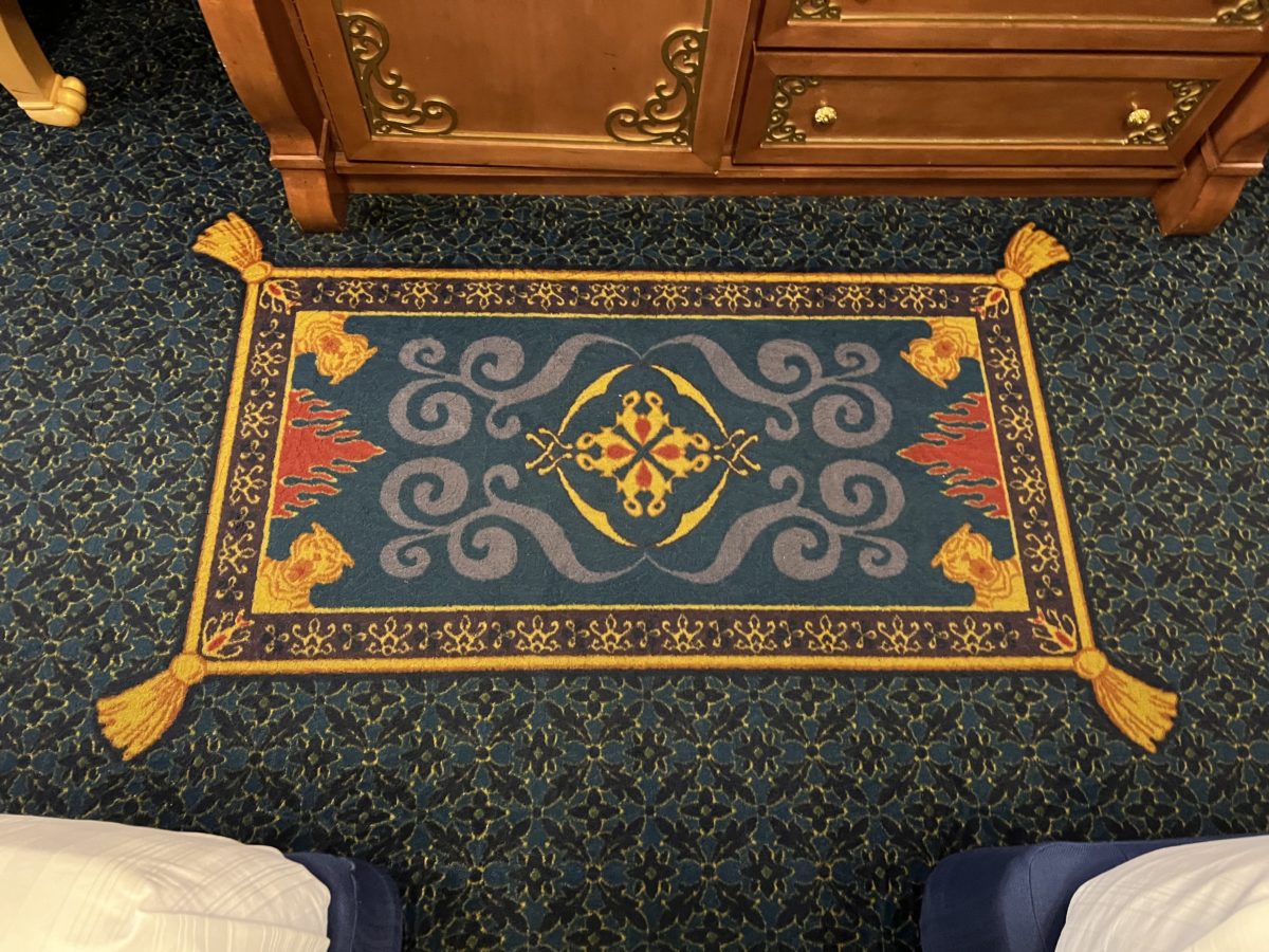 An image of the Magic Carpet from “Aladdin” is in front of the dresser.