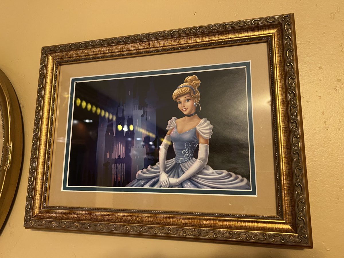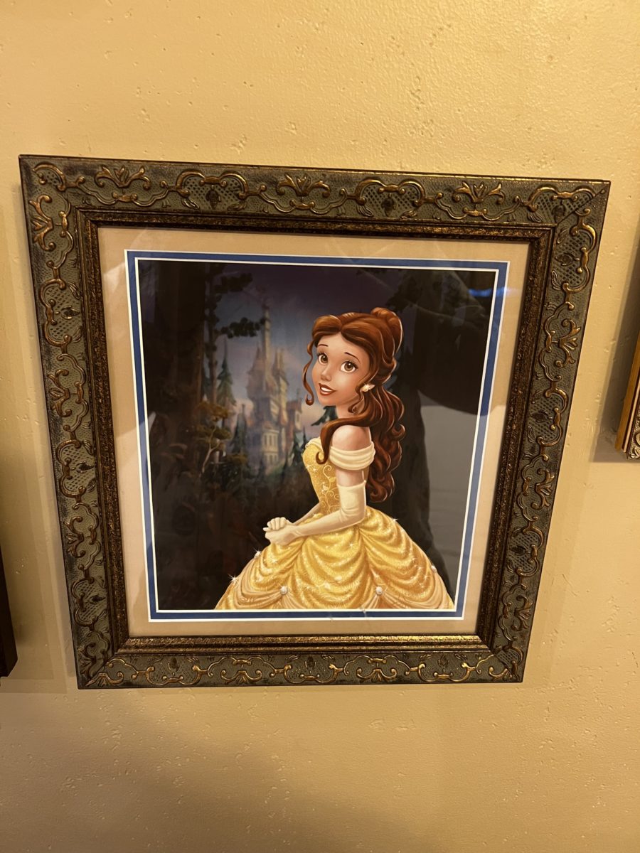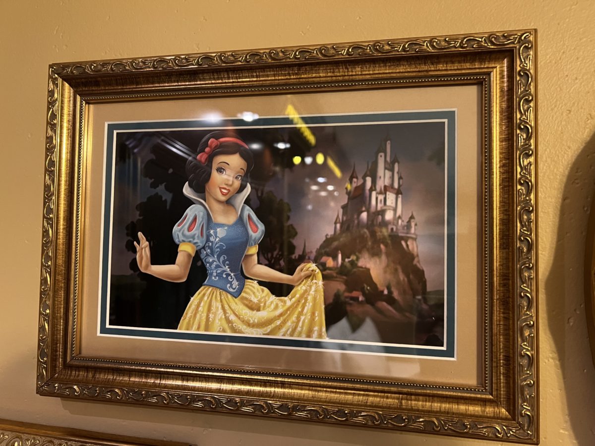 Left of the TV is a portrait of Tiana. This portrait is in an ornate wooden frame that was “a gift from Snow White and the Seven Dwarfs”.