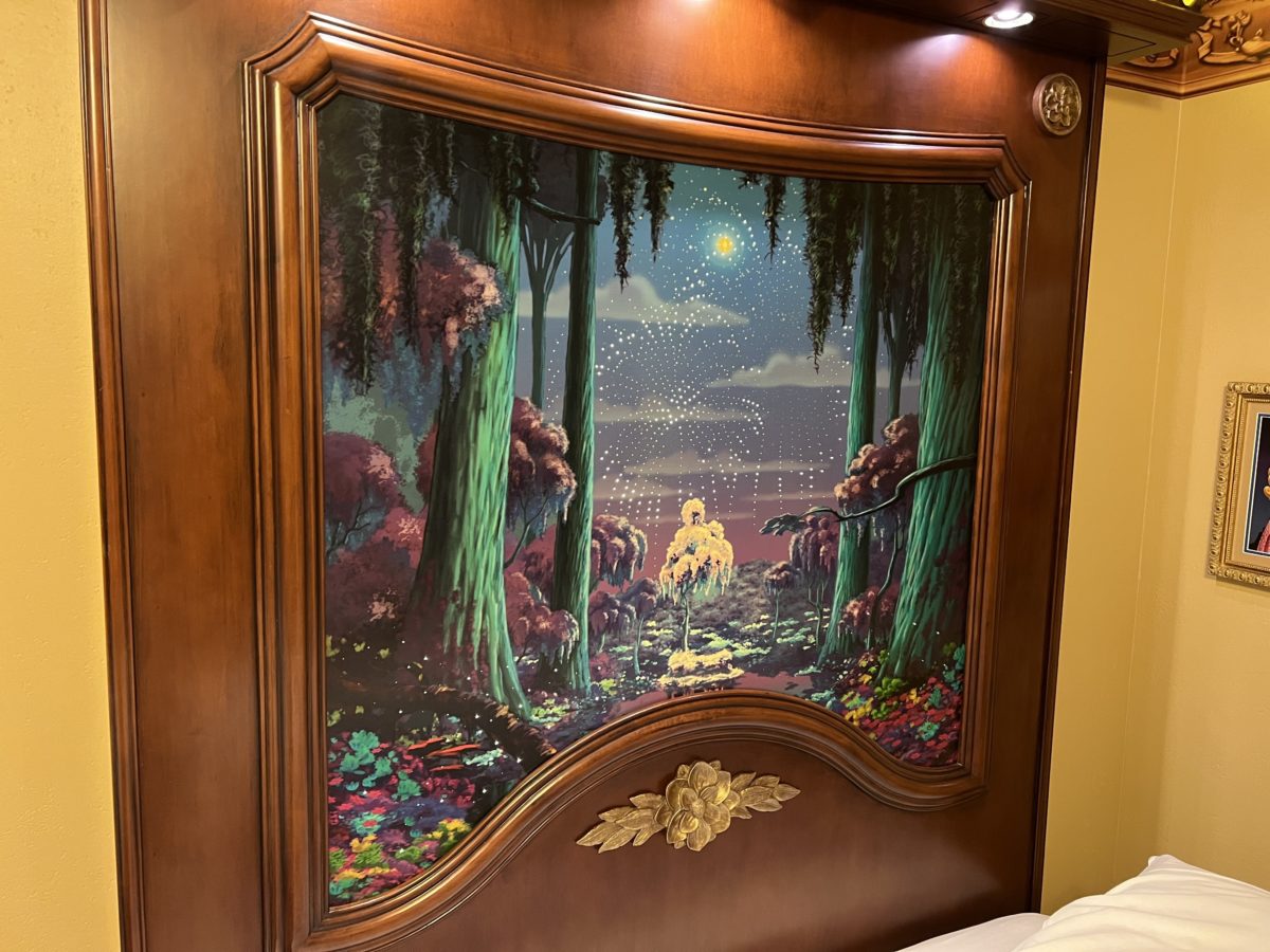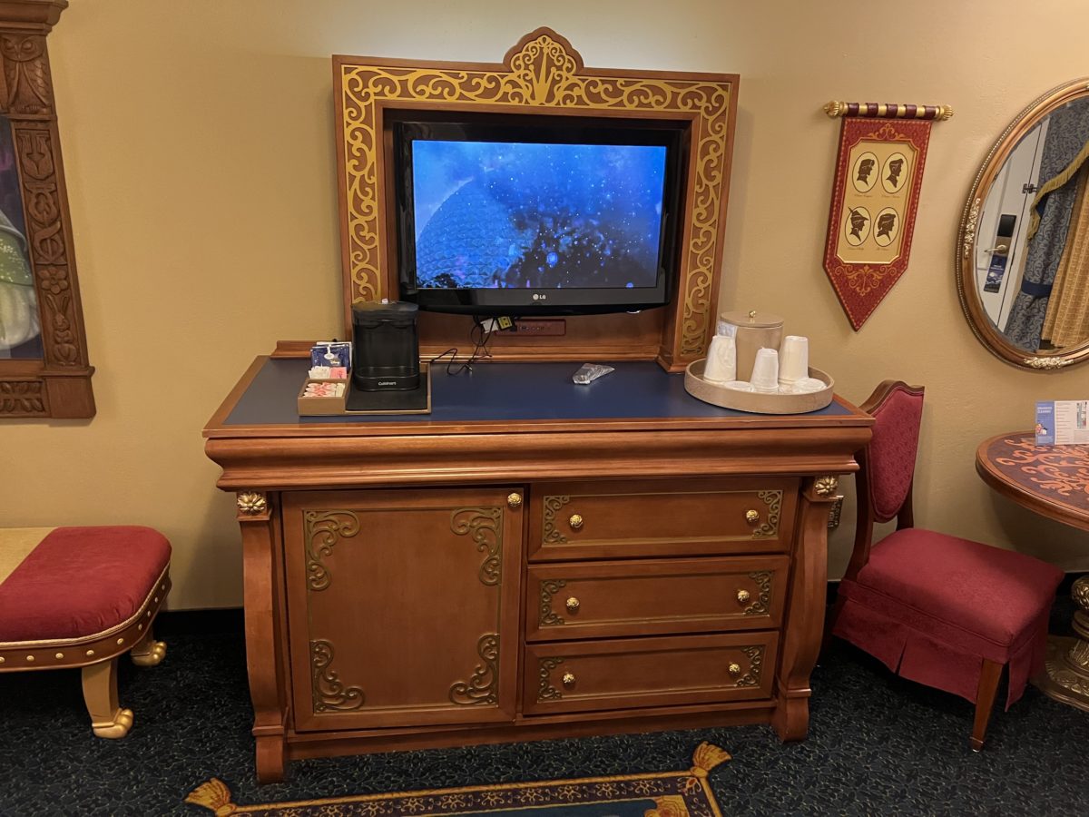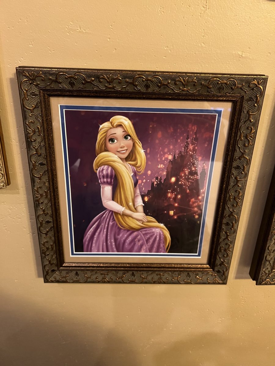 Left of the TV is a portrait of Tiana. This portrait is in an ornate wooden frame that was “a gift from Snow White and the Seven Dwarfs”.