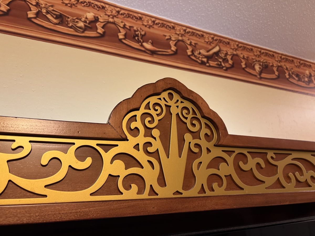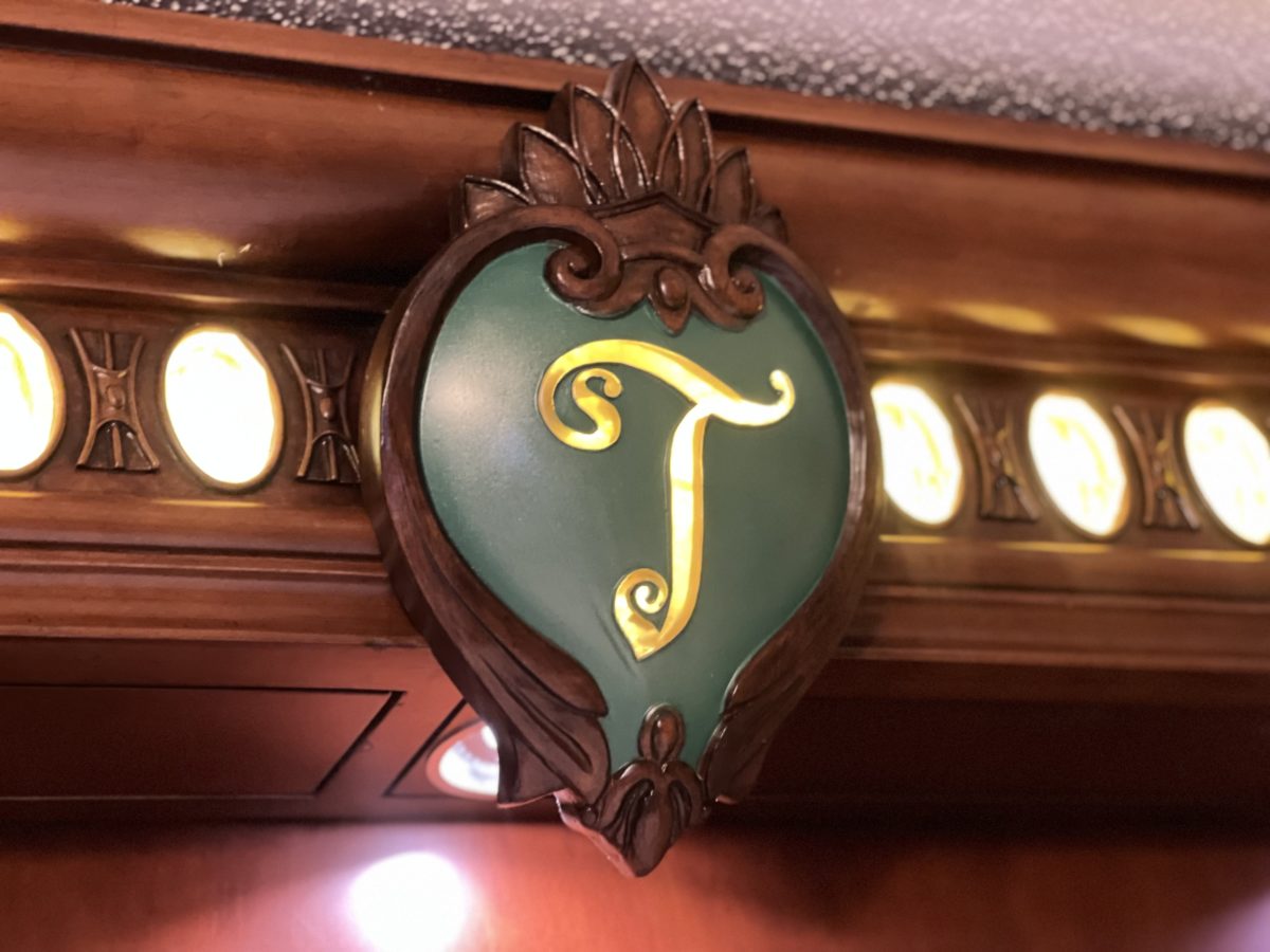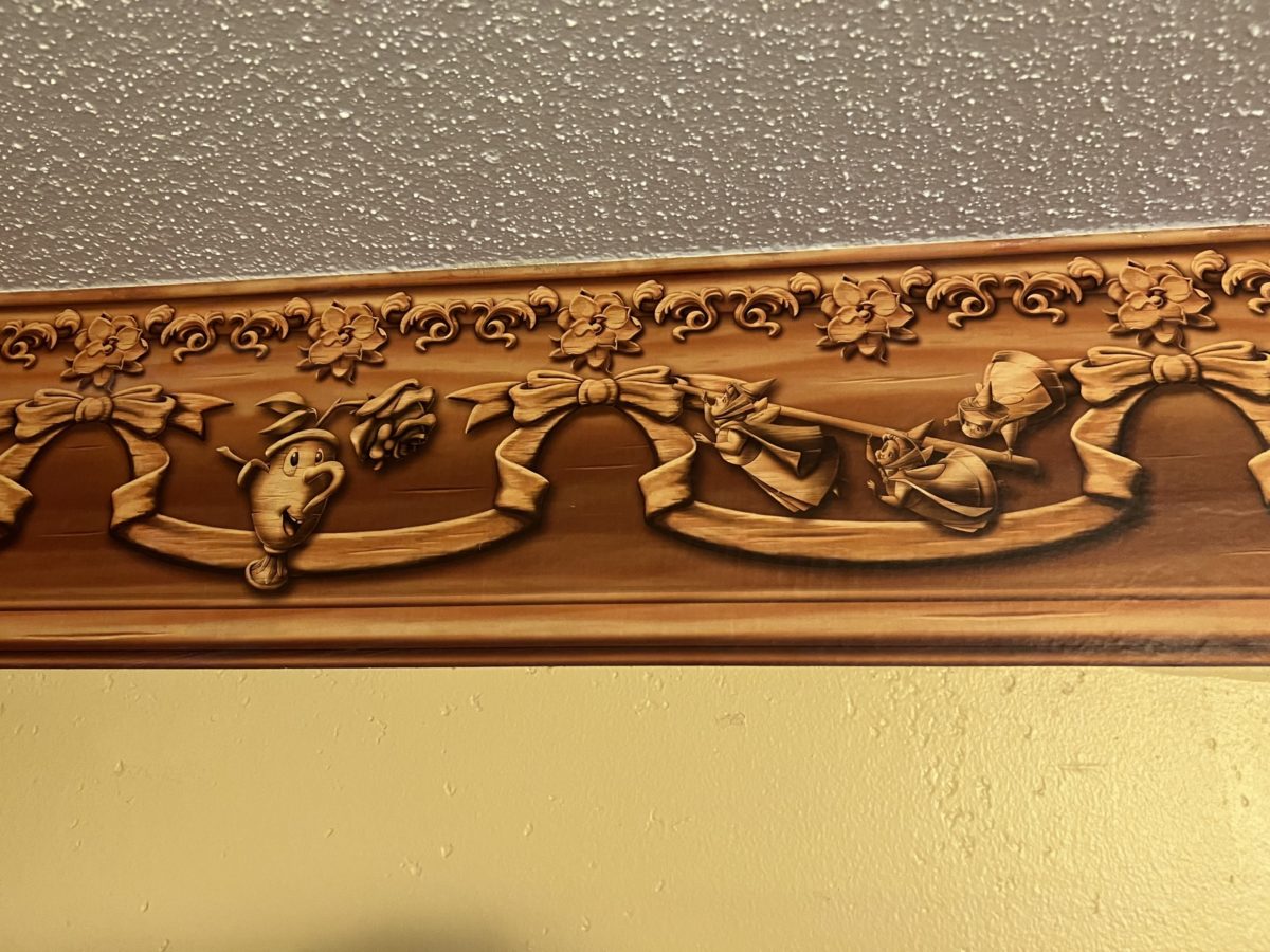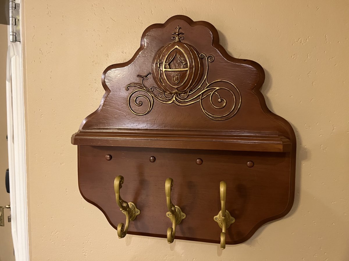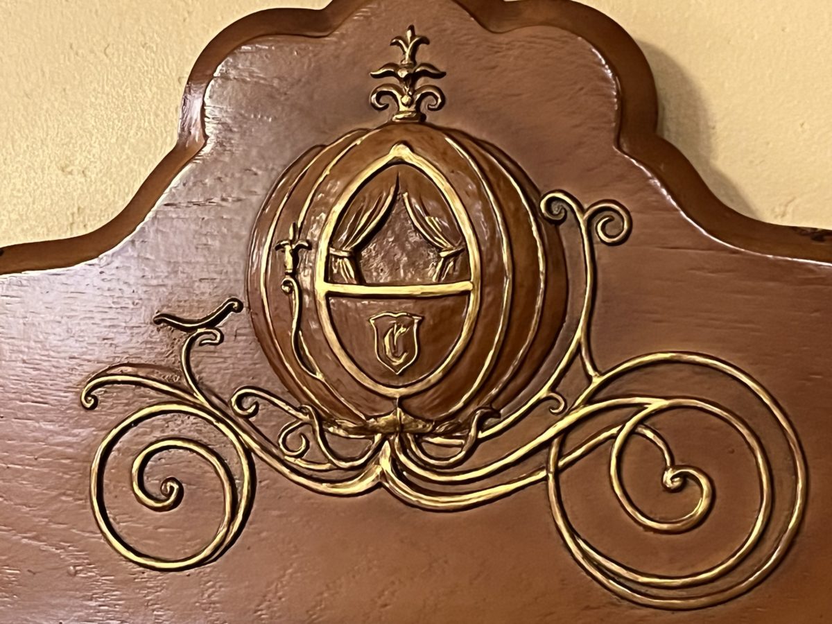An image of Cinderella’s pumpkin carriage is carved into the coat rack.