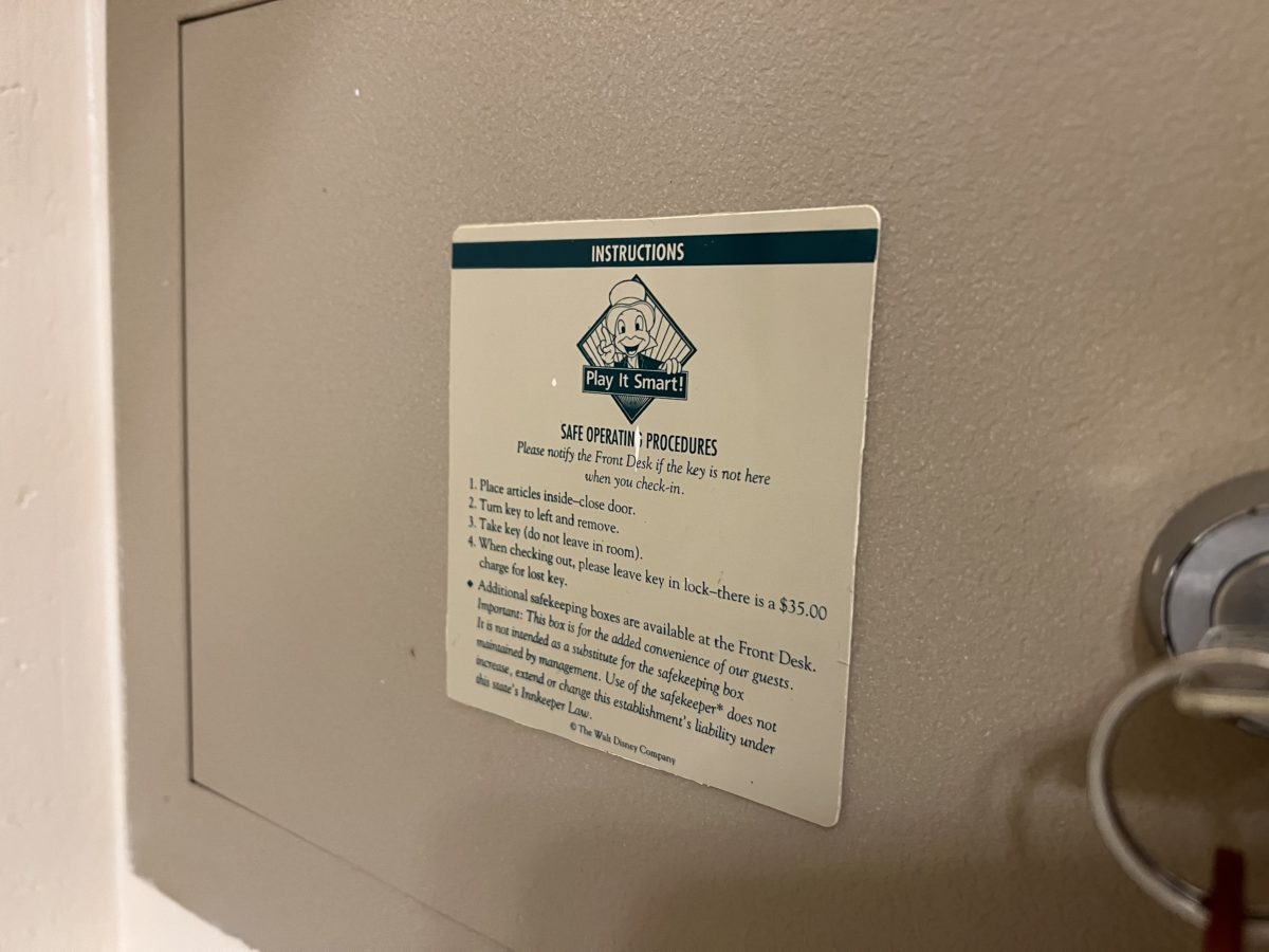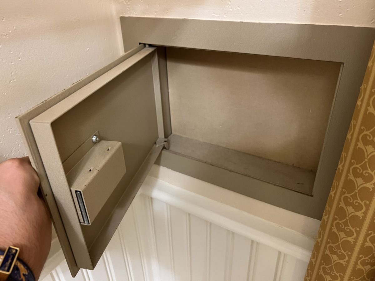 The closet also has a safe to secure valuables. This safe uses a key to lock.