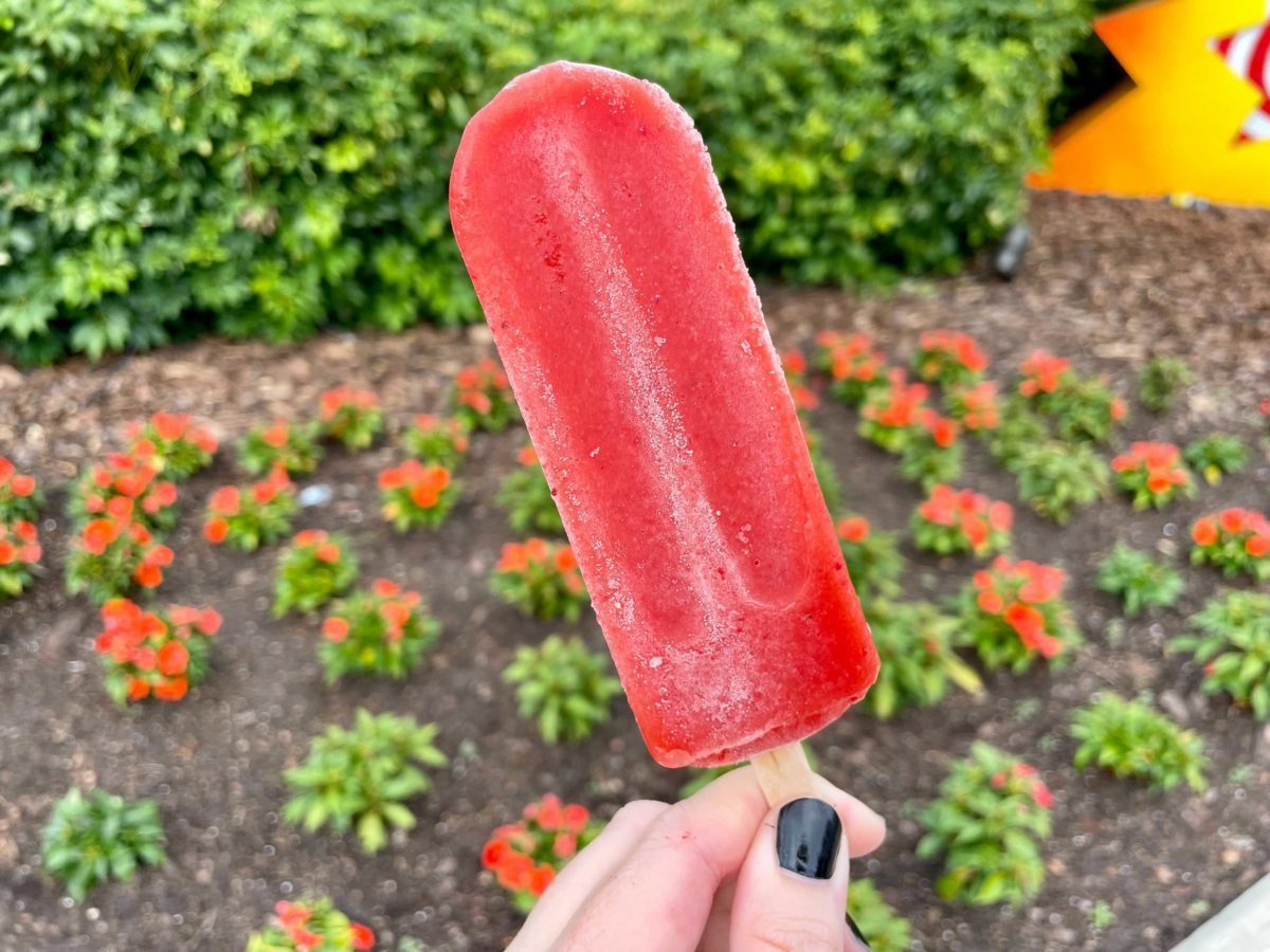 These new fruit bars are the perfect way to cool off on a hot Florida day. You can find them at the Hollywood or Bust stand in KidZone, along with some delicious Belgian waffle sundaes. Happy snacking!