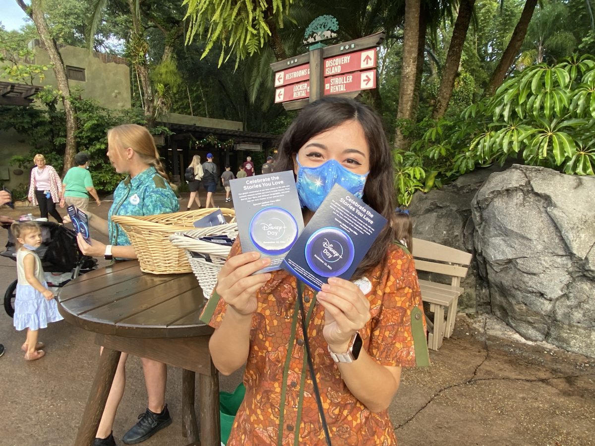 Disney was handing out free Disney+ Day 11.12.21 buttons and hats. Many guests wore them proudly.
