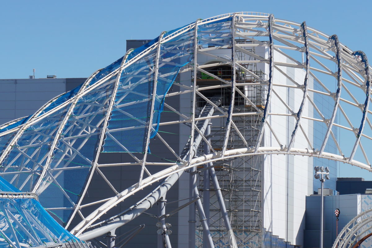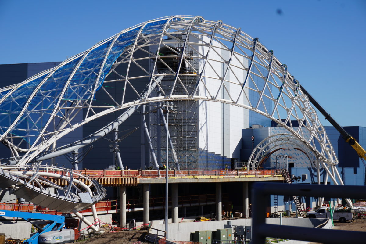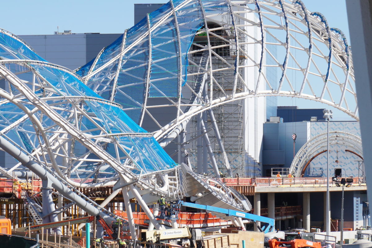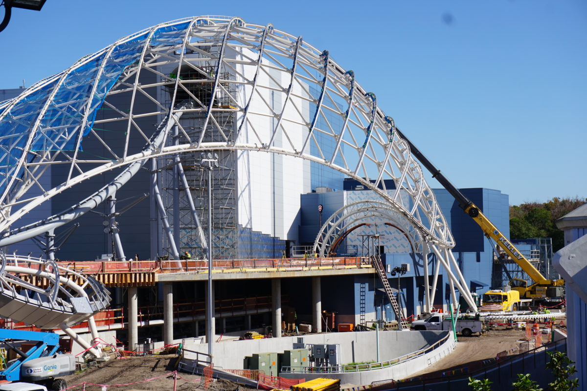 Even though no opening date has been announced for Tron Lightcycle/Run, the exterior is starting to take shape.