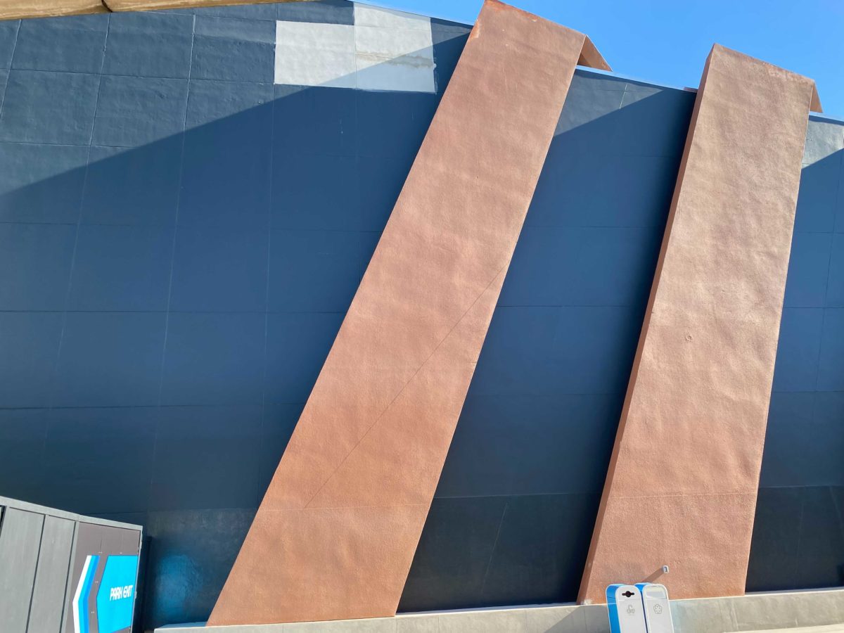 We now know Guardians of the Galaxy: Cosmic Rewind will be opening next summer. While we can’t be sure how far along interior construction is, exterior construction has been close to completion for a while now. But the paint on the sides of the “Wonders of Xandar” pavilion still seems to be an issue. While the orange pillars are looking better than they were a couple of weeks ago, there is a new patch of paint at the top of the wall.