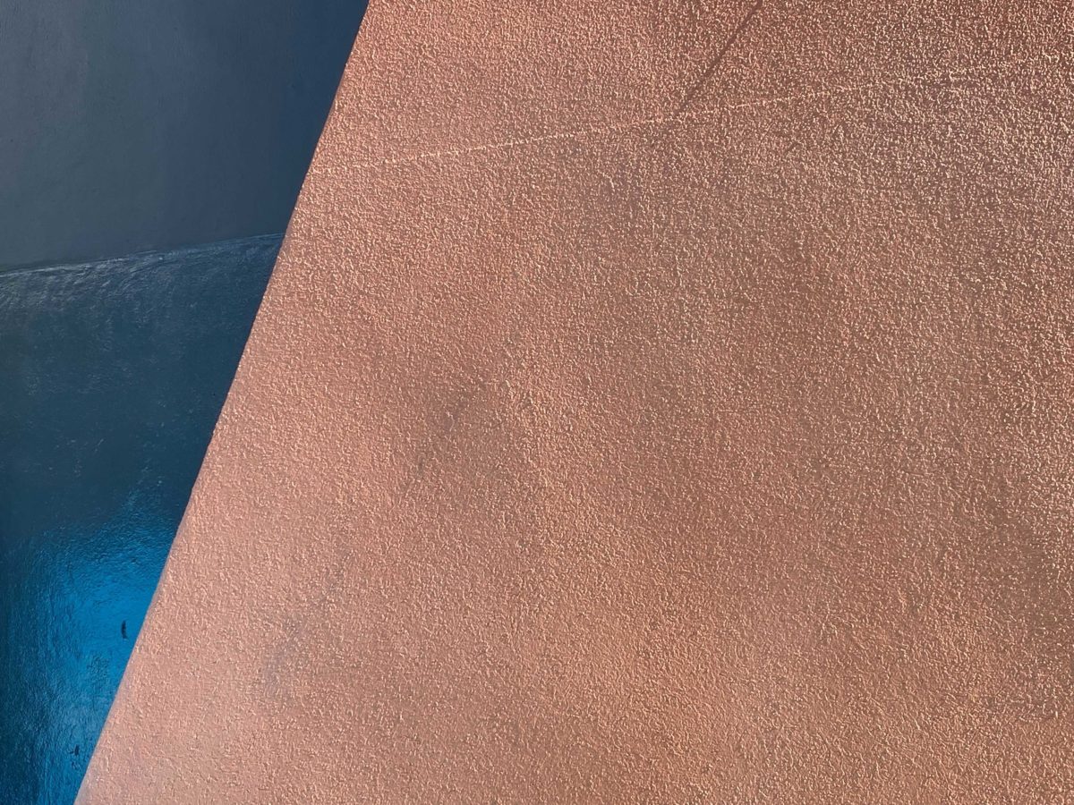 The black paint is visible on the bottom half of the middle pillar — behind a palm tree.