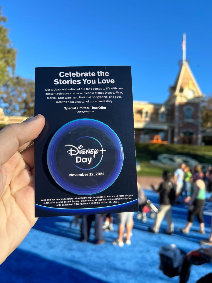 Upon entry, guests received a button with the Disney+ Day logo and date.