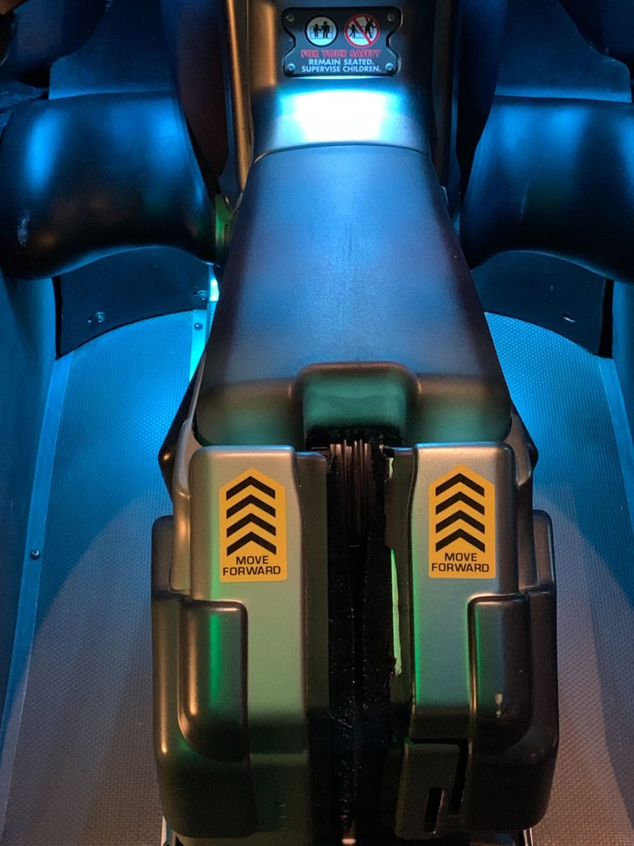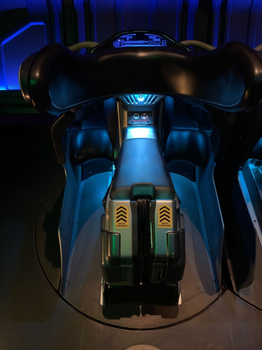 New stickers have been added to the link chairs at Avatar Flight of Passage at Disney’s Animal Kingdom. The stickers instruct guests to move forward after sitting on the link chair.