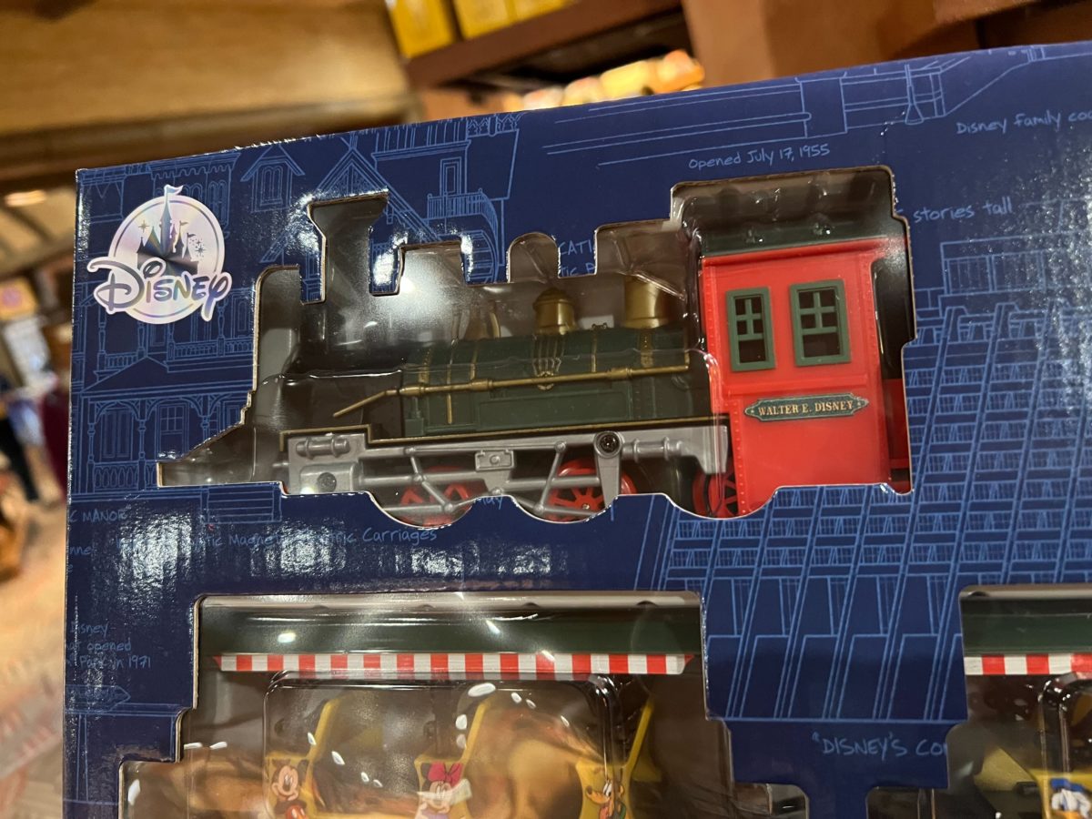 Fittingly, the Walter E. Disney steam engine pulls the cars. The engine is battery-operated. It has both lights and sound.