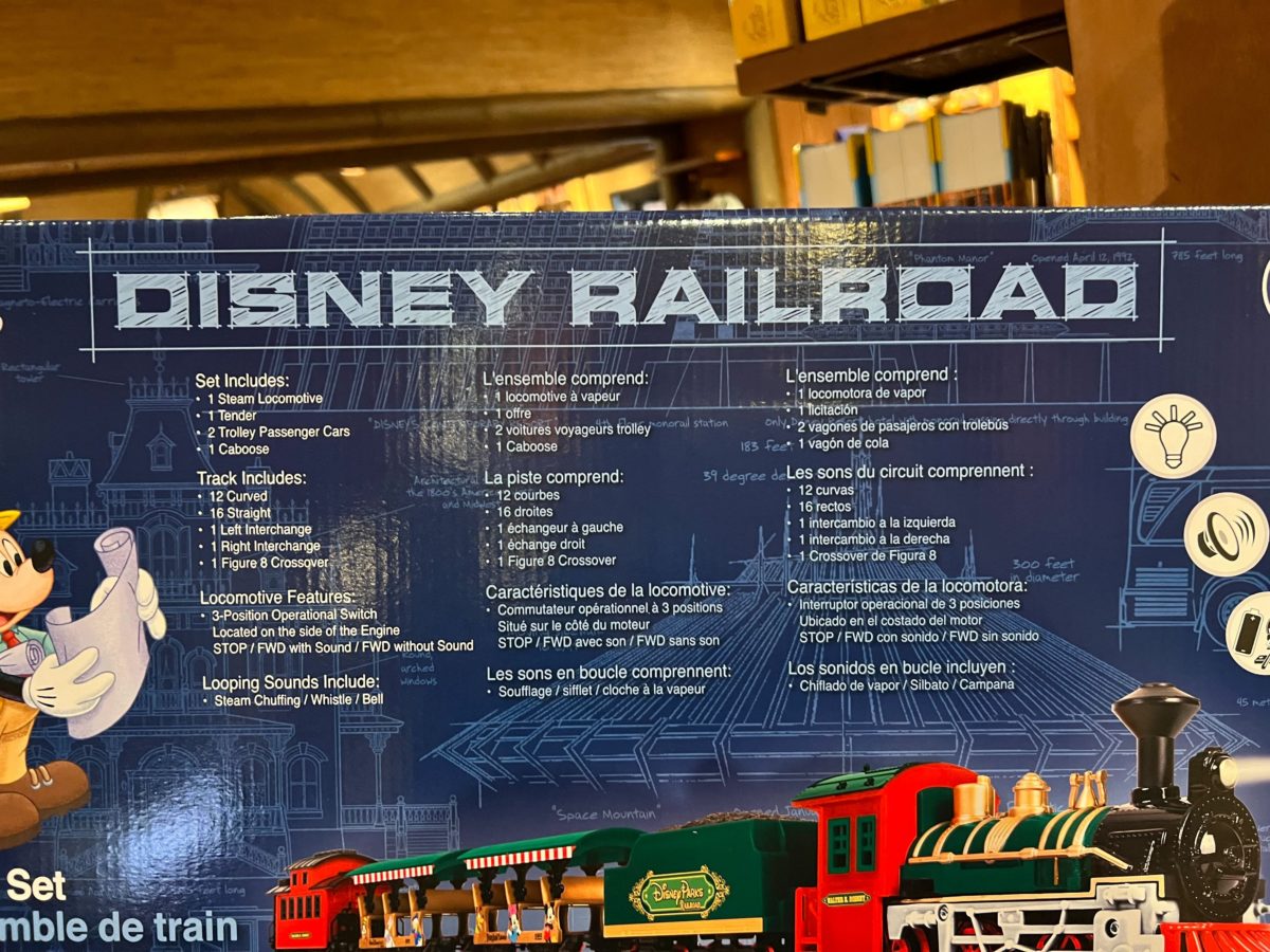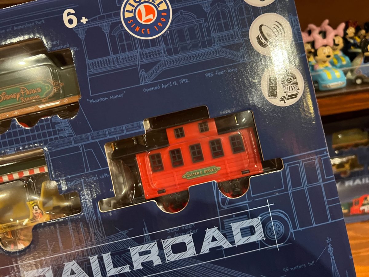 Both straight and curved track is included. Two interchanges and a figure 8 crossover complete the track package. We found the Lionel Disney Railroad set in Zawadi Marketplace at Disney’s Animal Kingdom Lodge.