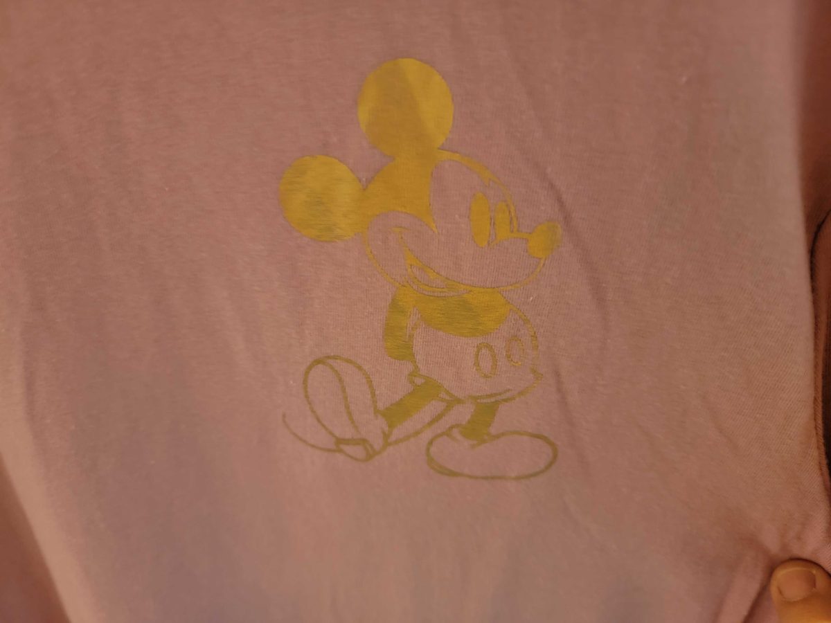 This pink jersey says “Disneyland” in the back in shiny fabric.
