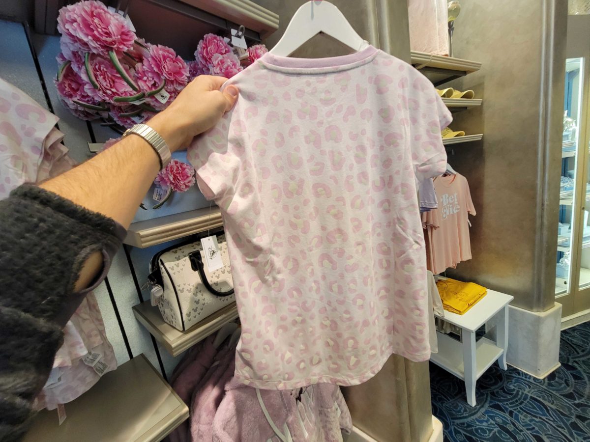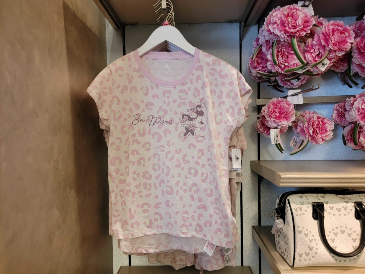 This next series of apparel features Minnie Mouse and a pink leopard print. This tee says “Be more…” followed by Minnie posing in her classic outfit.