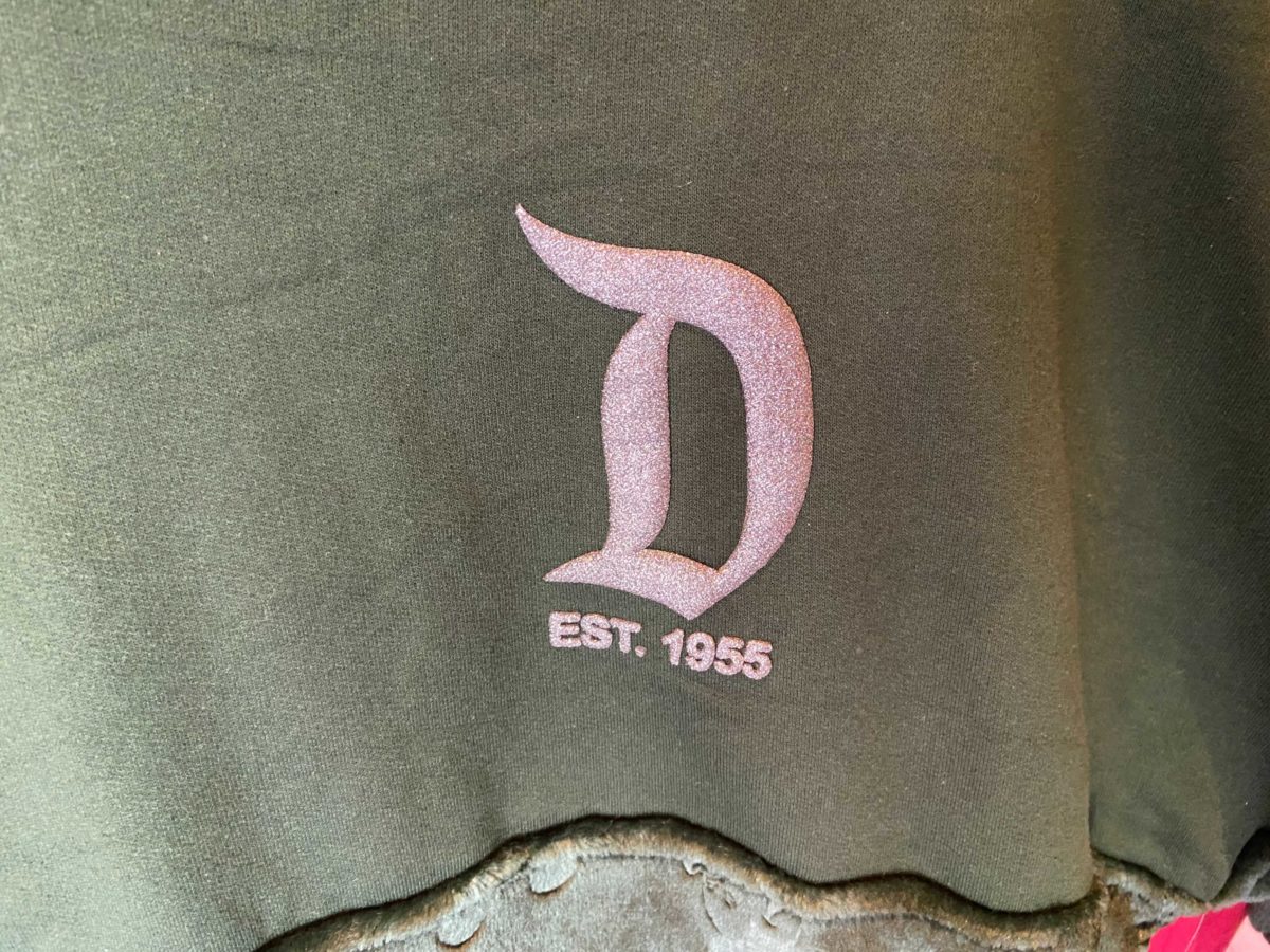 A Disneyland “D” logo and “Est. 1955” are printed on the left breast. The print has a bit of a metallic sheen.