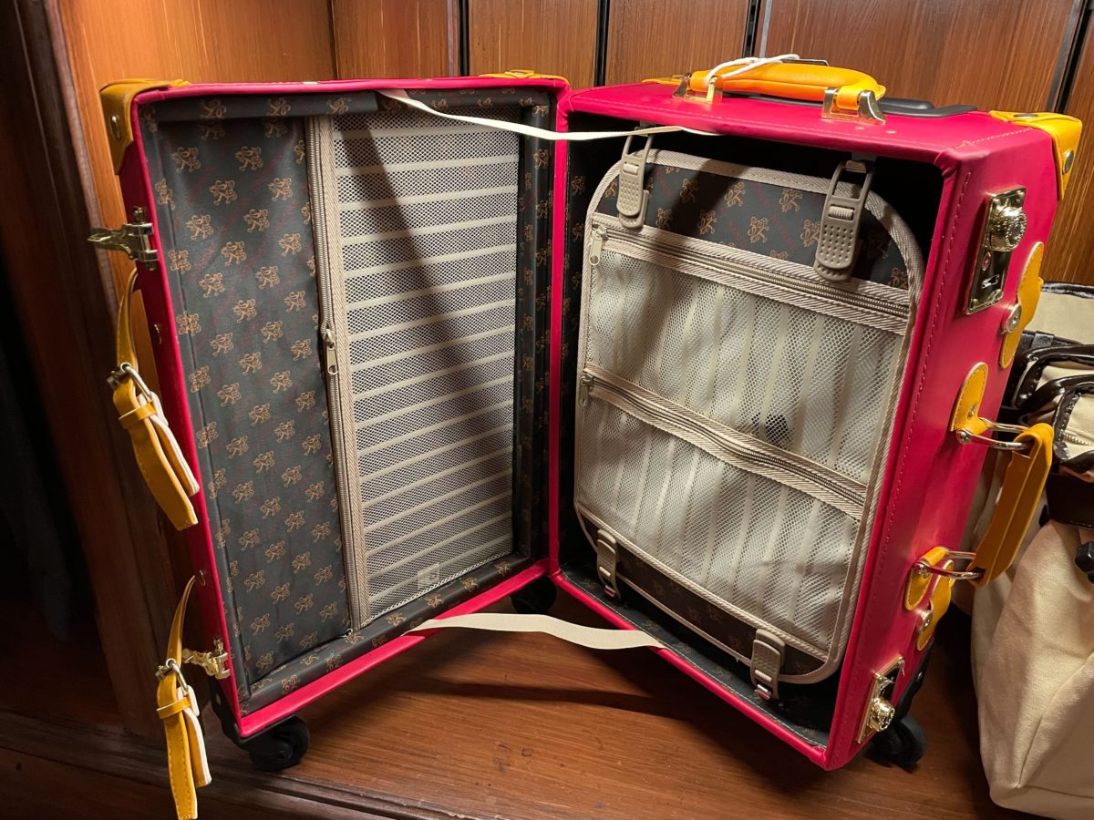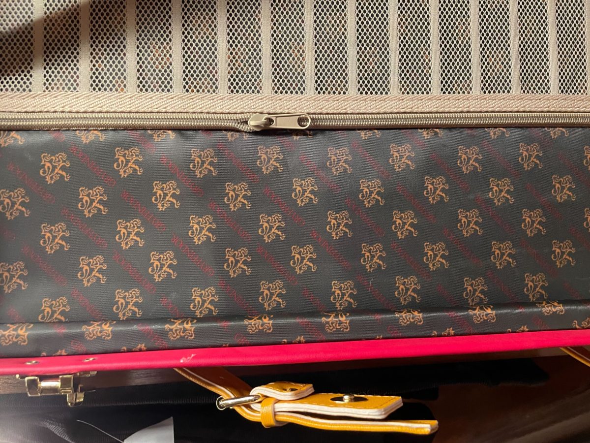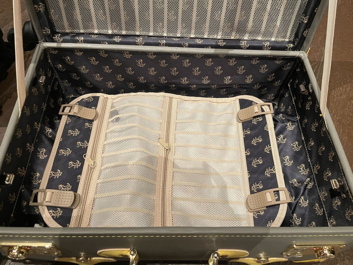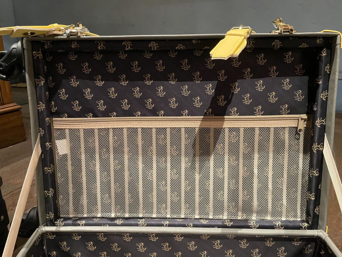 Curiously, unlike the other house suitcases, the interior lining doesn’t have the animal featured. Instead, “Ravenclaw” is repeated in gray on a black background.