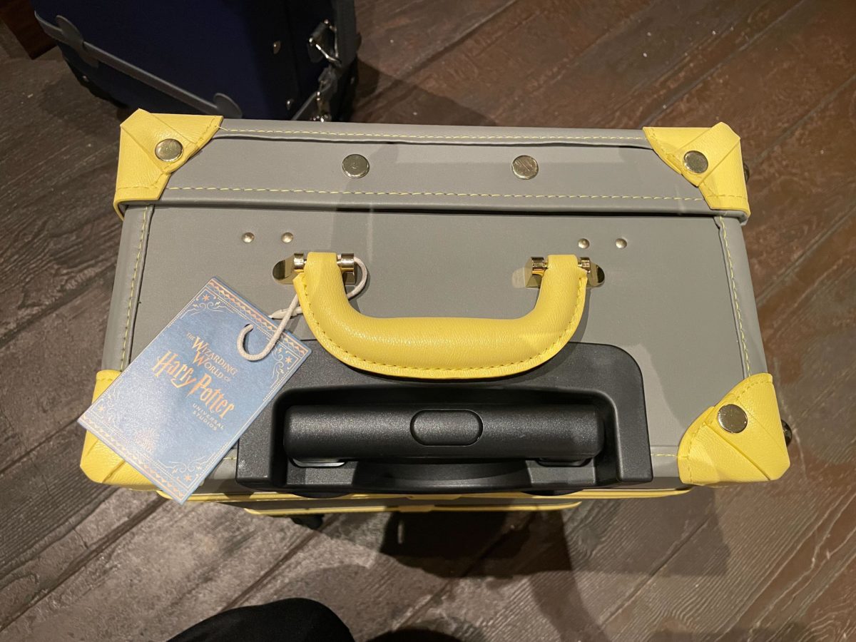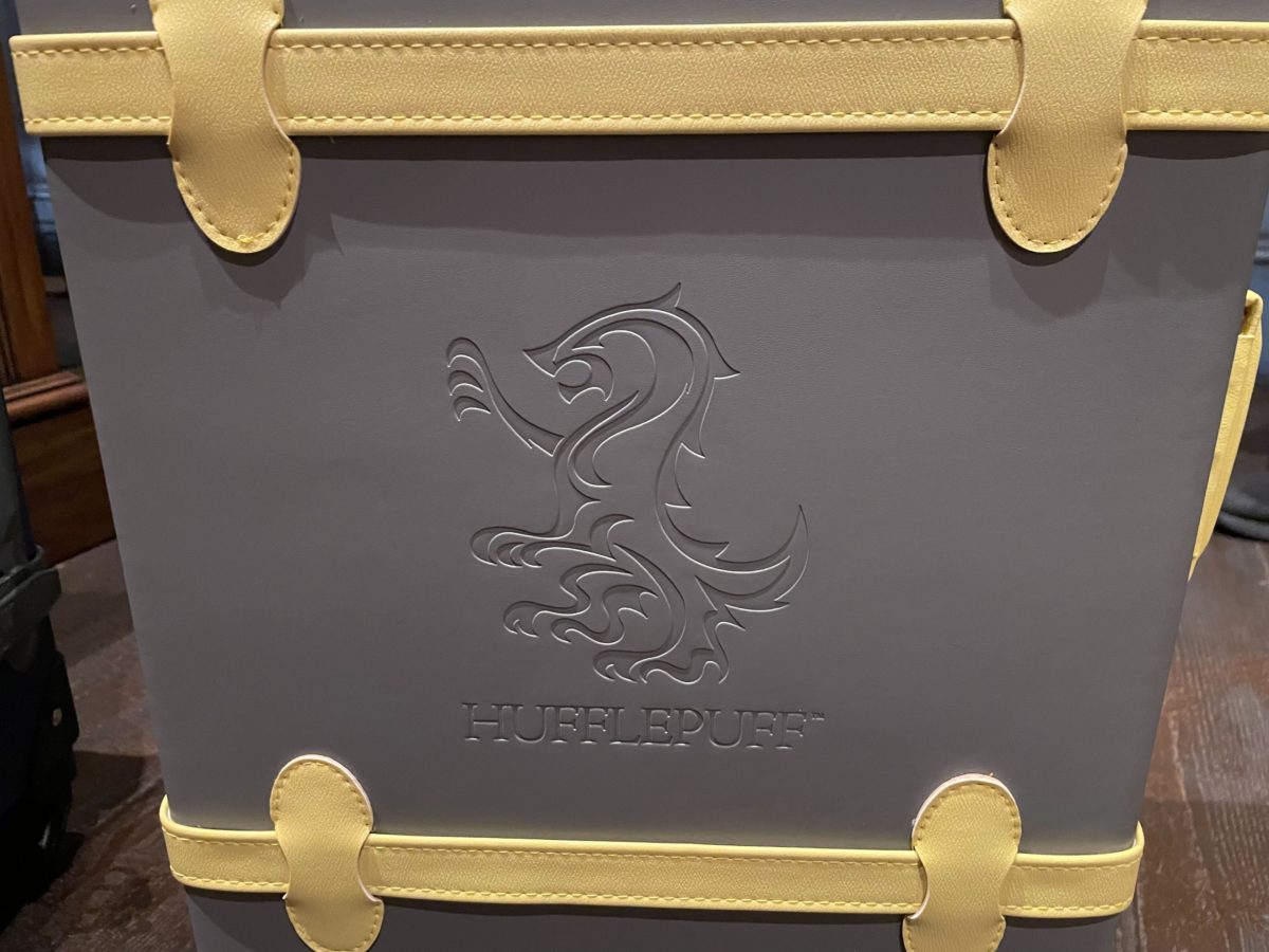 The badger of Hufflepuff is featured on the house’s gray and yellow suitcase.