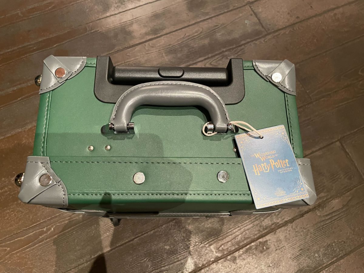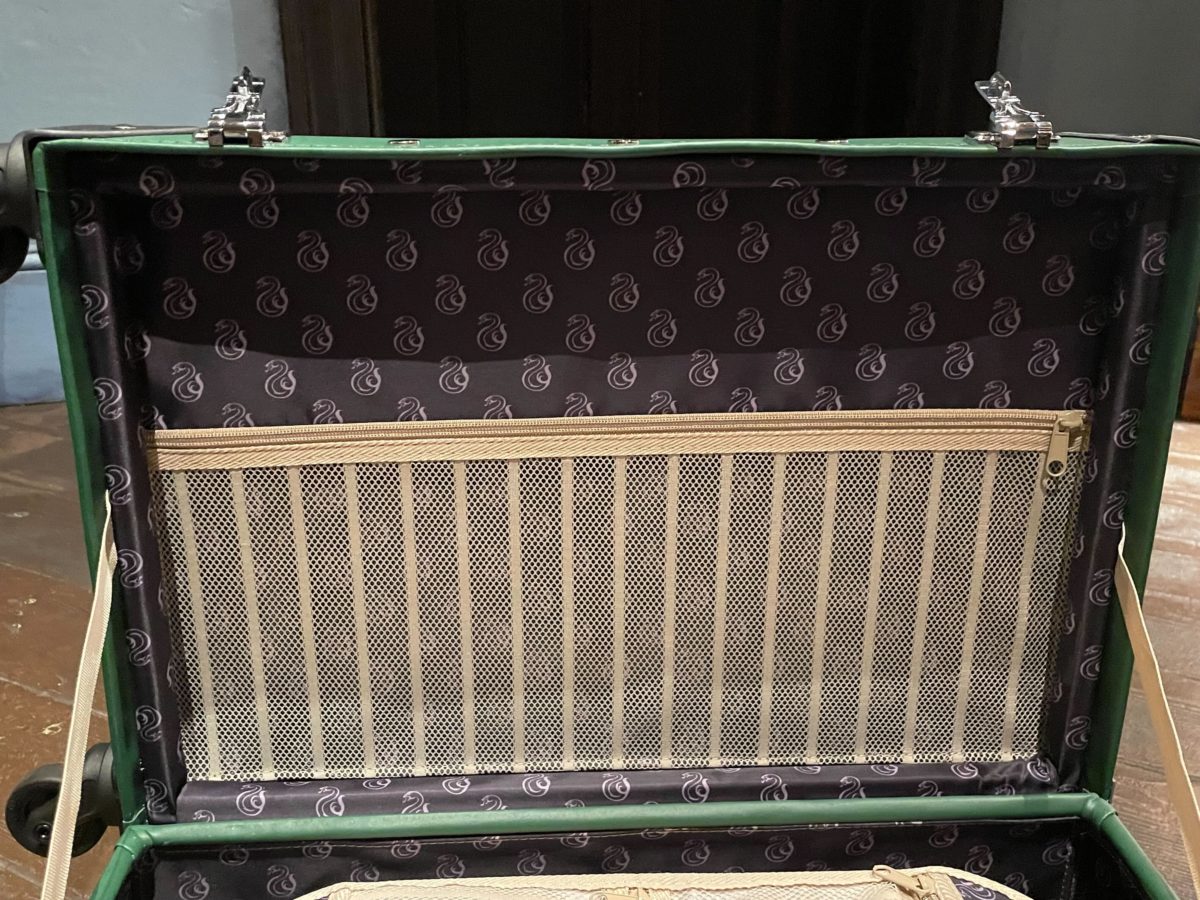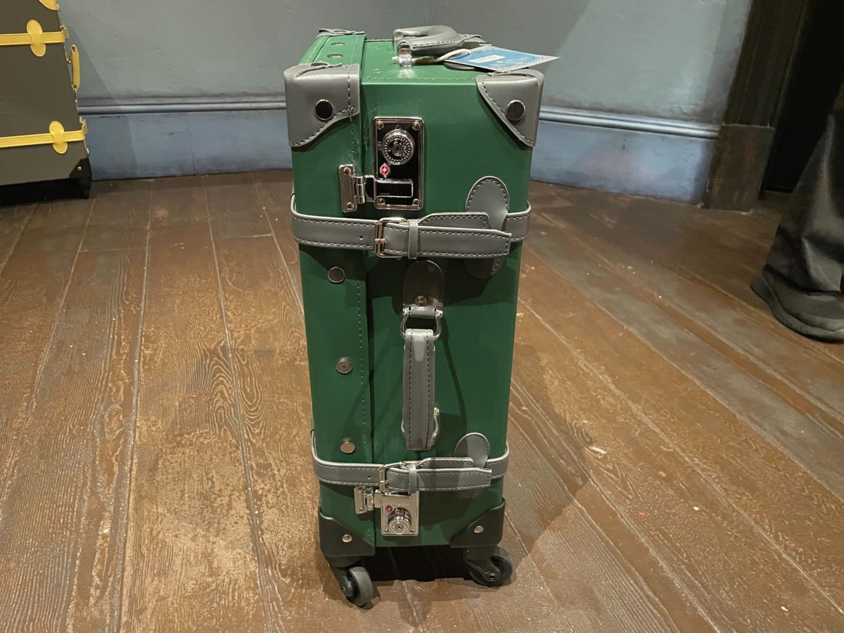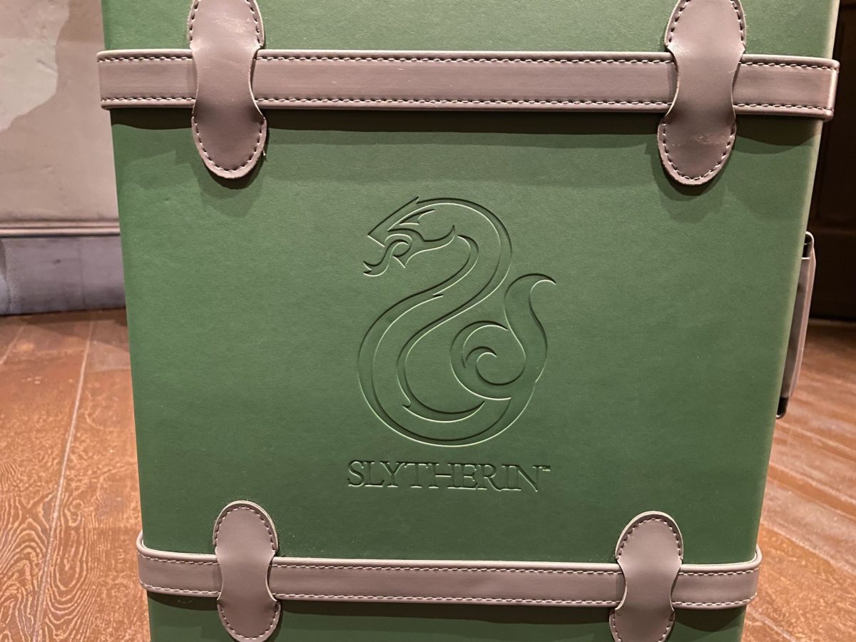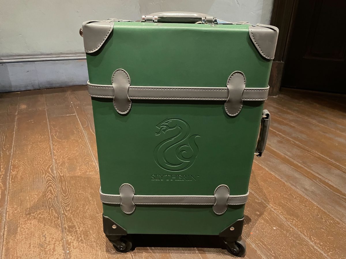 Finally, the serpent of Slytherin stars on the house’s green and gray suitcase.
