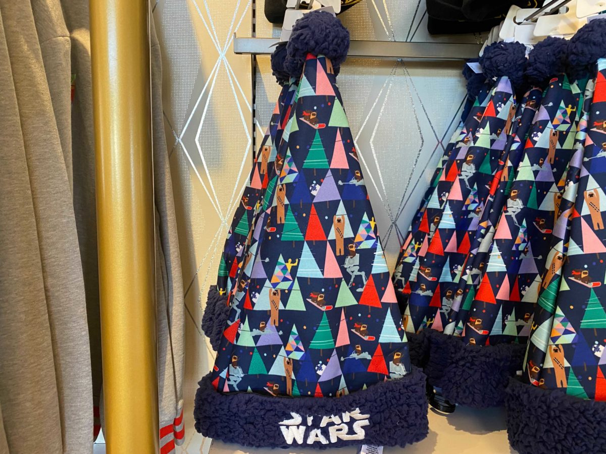 This dark blue Santa hat has “Star Wars” embroidered on the bottom edge.