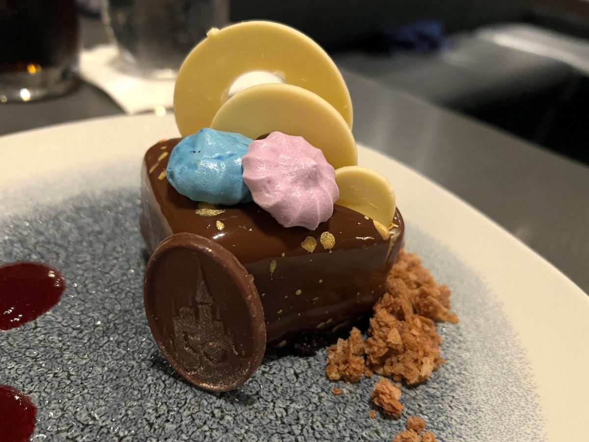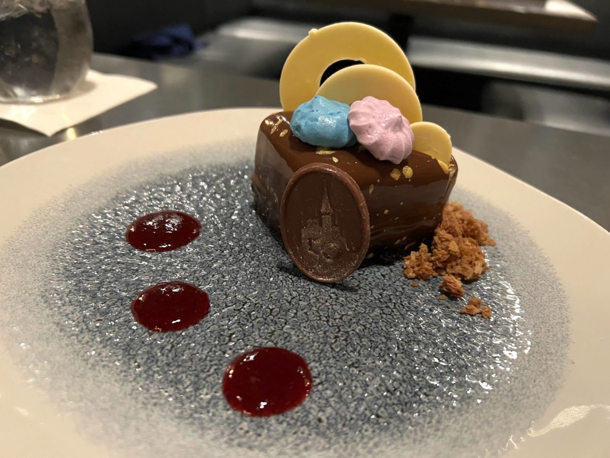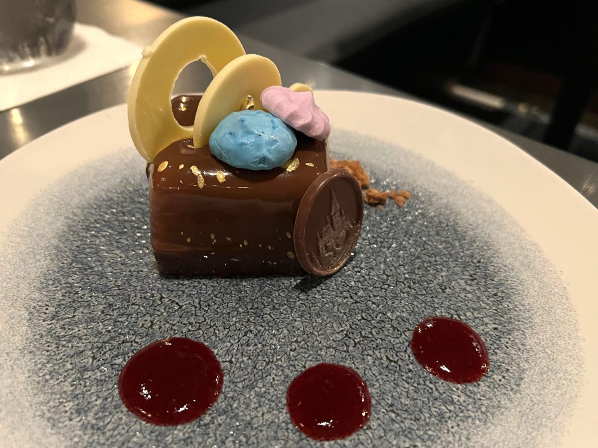 Much like nearly every other 50th anniversary dessert at Walt Disney World, this one has a chocolate 50th icon.